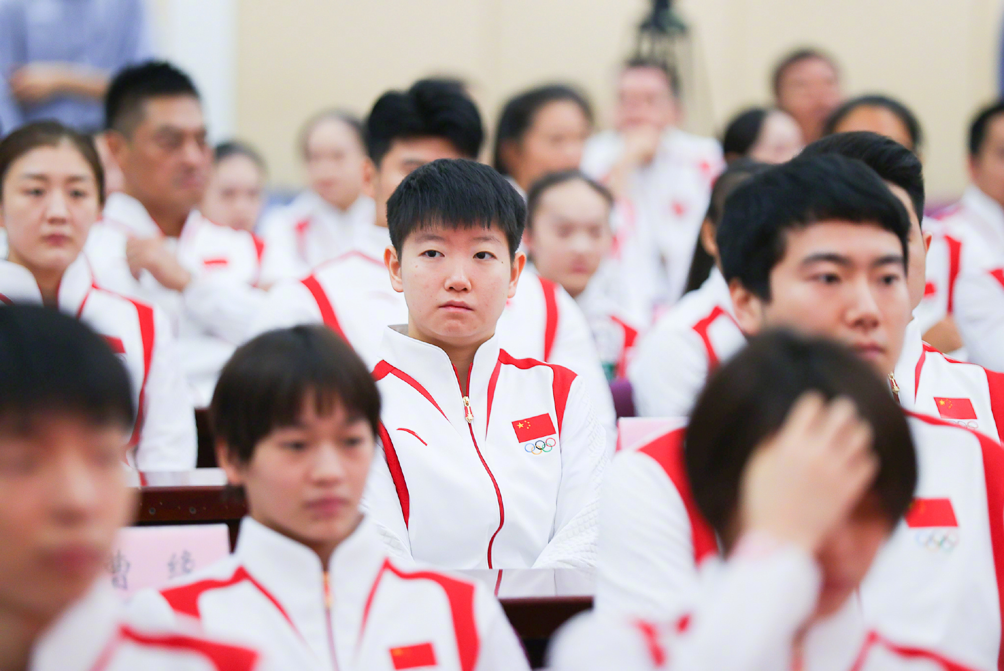 今天,2024巴黎奥运会中国体育代表团成立。樊振东、马龙、孙颖莎、王楚钦、陈梦、王曼昱、王艺迪、陈芋汐、吴艳妮、王宗源、刘洋等奥运健儿现身大会现场。