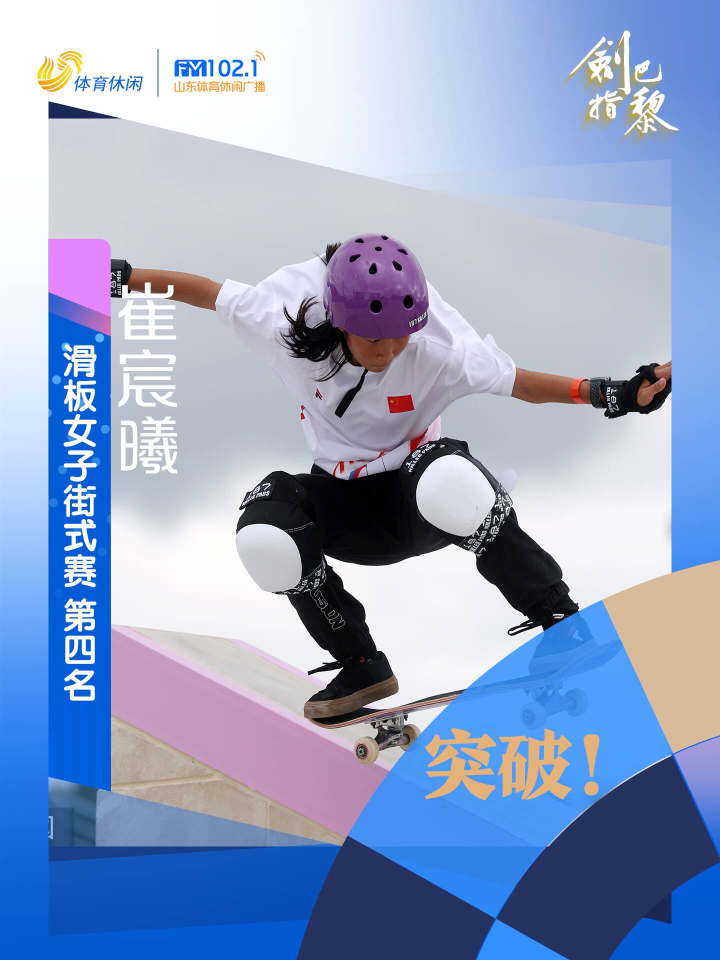 齐鲁网·闪电新闻7月28日讯 闪电体育消息,北京时间7月28日23点,巴黎奥运会滑板女子街式赛展开决赛争夺,山东滑板少女崔宸曦在比赛中获得第四名,刷新了中国选手在奥运会女子街式滑板项目上的最好成绩。此前,中国队在奥运会滑板街式赛中的最好成绩是第六名,这一成绩由曾文蕙在2020年东京奥运会上获得。