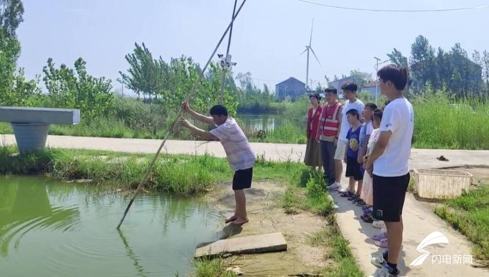 “别看这条河表面很平静,其实,里面水非常深,水面下的暗流、水草都可能对人造成生命危险……”在坑塘边,志愿者现场讲解私自下水的危险性,让孩子们切身感受水的危险,增强自身保护意识。