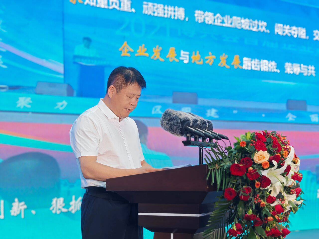 博兴县委副书记、县长孙战勇宣读《中共博兴县委 博兴县人民政府关于命名“功勋企业家”“行业领军人物”“成长创新标兵”的决定》。