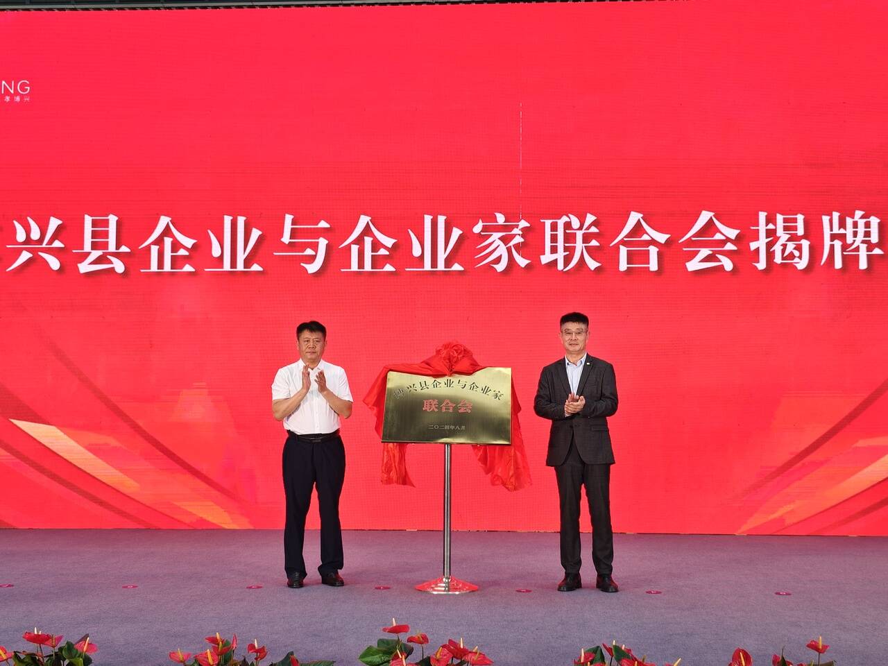 博兴县委书记高志国、博兴县企业与企业家联合会会长马韵升共同为联合会揭牌。