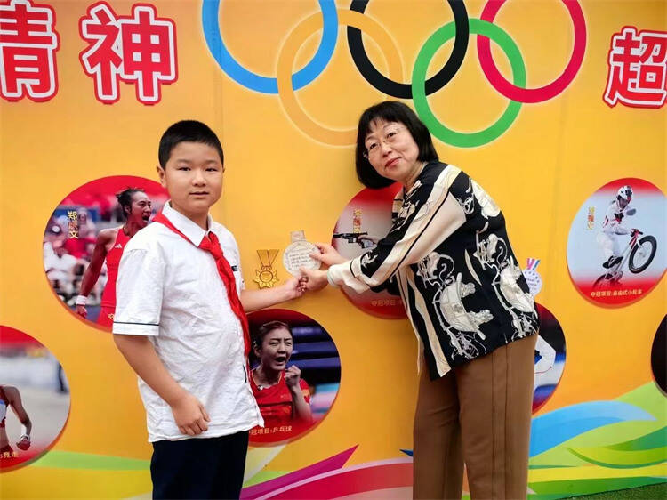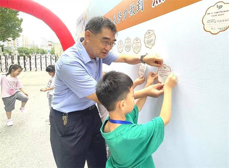 仪式现场,同学们在老师的指引下将带有自己新学期目标的“冠军目标”卡片贴在校门口的展板上,表达着对新学期饱满的热情和坚定的信念,表示将会学习奥运榜样,用不断攀登的精神,努力成长为自己心中的冠军。