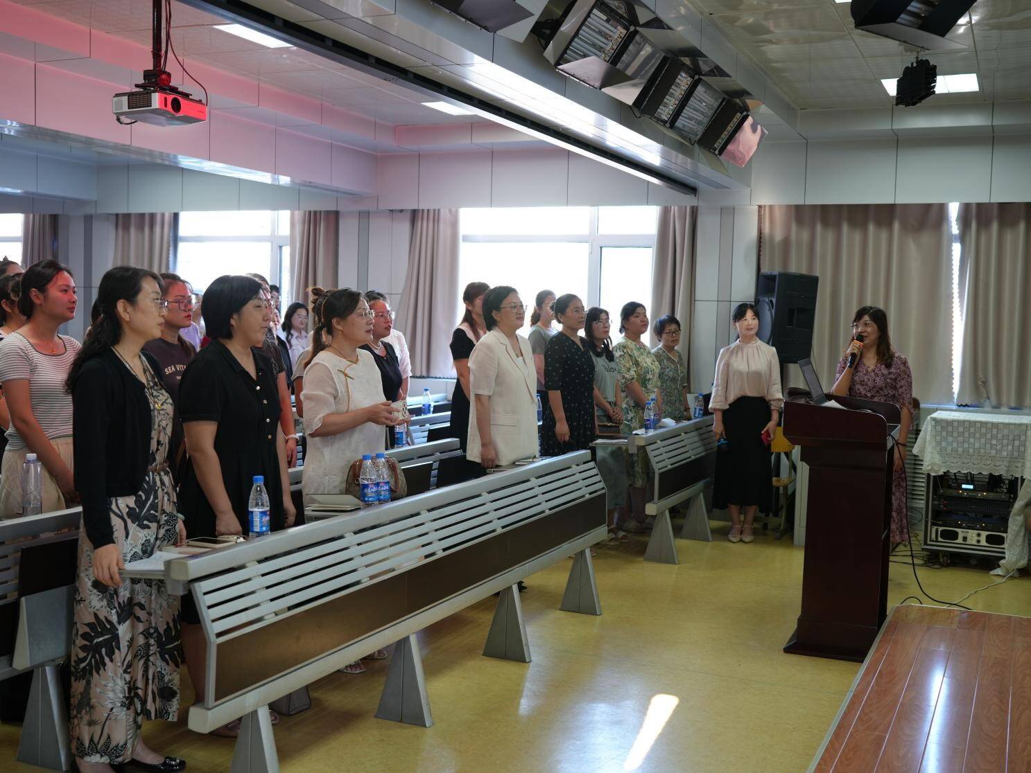 参加本次启动仪式的有七所阅读共同体学校的校长,以及来自共同体学校近200位热爱读书的老师。本次启动仪式共分五个环节,分别是:跟着校长去读书、教师代表发言、好书推荐、最美朗读者、读书宣言。活动由实验小学盖旭兵老师主持,修校长作为校长代表致辞发言,古城小学车康康老师作为教师代表发言。在好书推荐部分,西关小学邱舒清、文化路学校吴姗、白龙路小学邓伟燕三位老师分别从人文社科类、专业发展类和职业提升类三个角度进行了好书推荐。“最美朗读者”和平小学李玲老师深情朗诵《我与地坛》选段,与老师们共品文字之温度。文峰学校万伟燕带领全体老师朗读集体“读书宣言”,将活动推向了高潮。