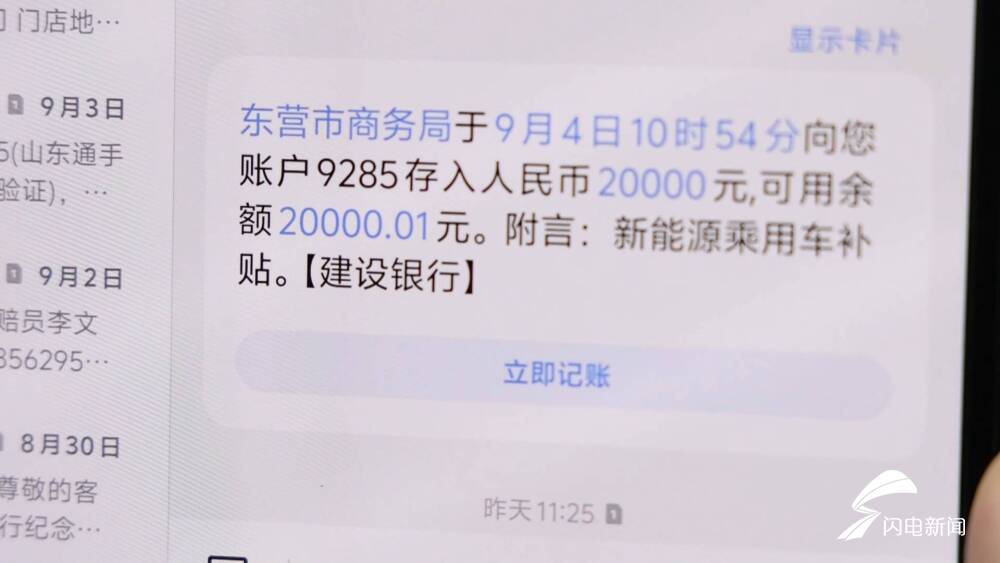 9月4日,东营市民王平收到了国家发放的新能源乘用车补贴,这让他开心不已。