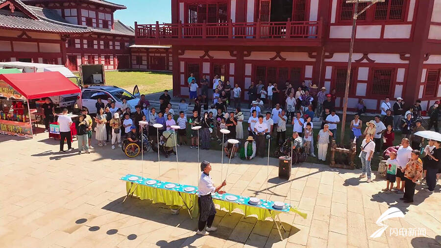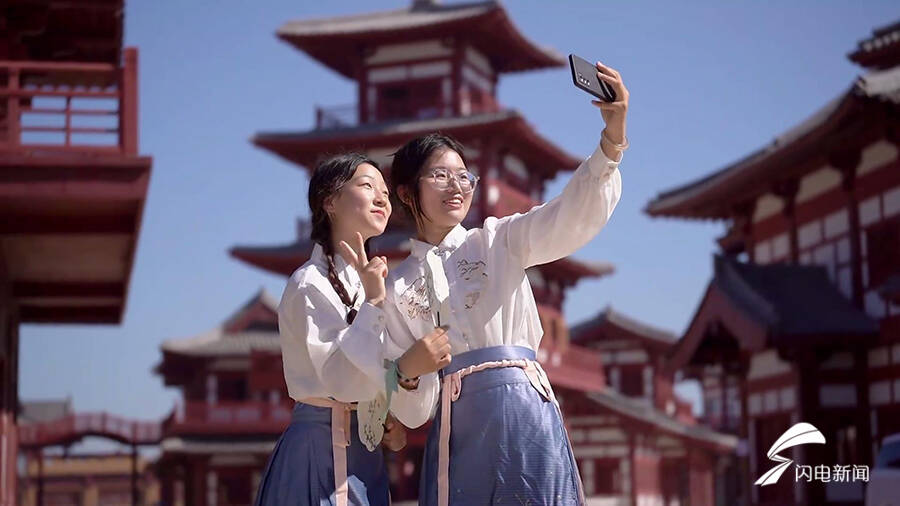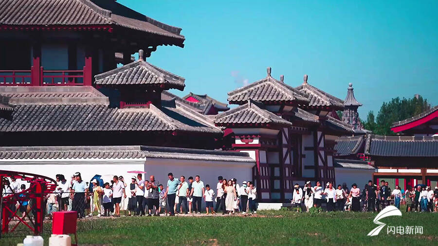 8月12日,备受瞩目的乐陵影视城迎来了首次免费限时开放,在志愿者引导下,游客穿梭于宫殿街市中,享受“一秒入唐”的体验。这次限时开放的乐陵影视城一期项目主要以还原盛世唐朝为主题。前不久,由杨紫、李现主演的古装剧《国色芳华》刚刚在这里杀青。在上个月举行的《长相思》线下活动中,杨紫还特地现场推介《国色芳华》乐陵取景地,让更多人对这里产生向往。