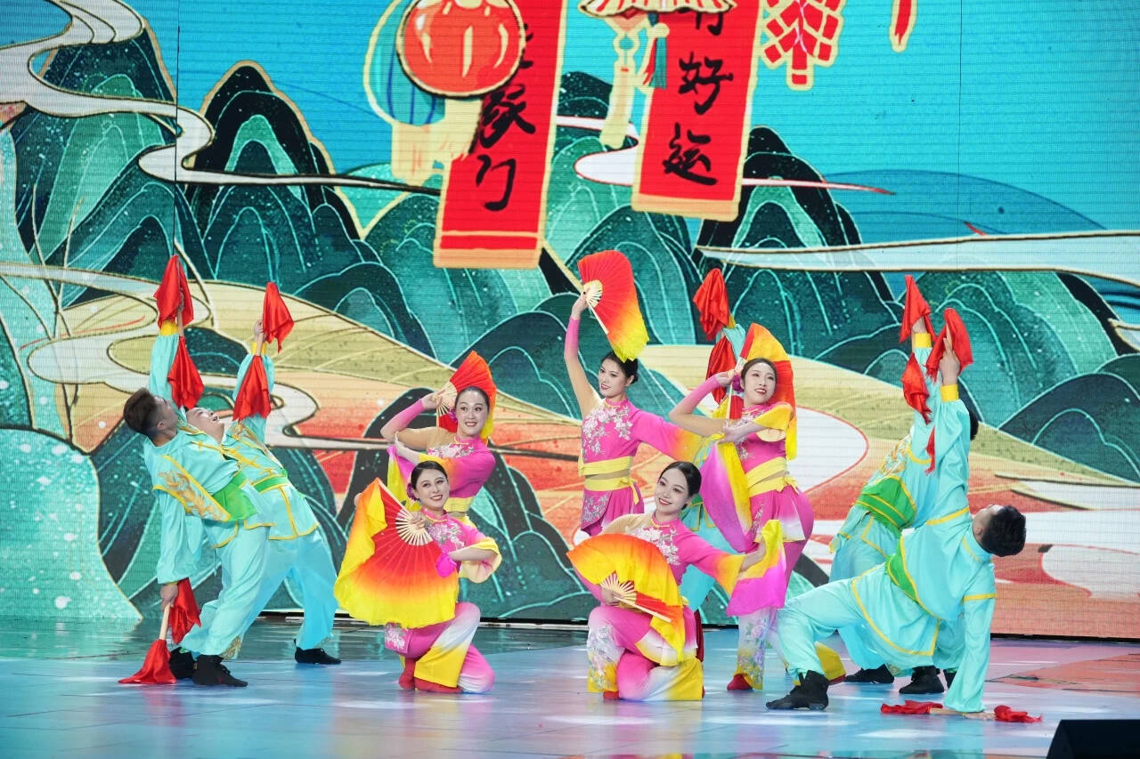 胶州秧歌《乐翻了天》是以胶州秧歌中的“棒子”和“扇女”这两种青年男女人物角色为元素,展现出独特的齐风鲁韵和山东人的热情豪迈。抒发了国泰民安、百姓安居乐业,生活在胶州湾畔的青年男女们乐翻了天,享受美好生活的喜悦心情。