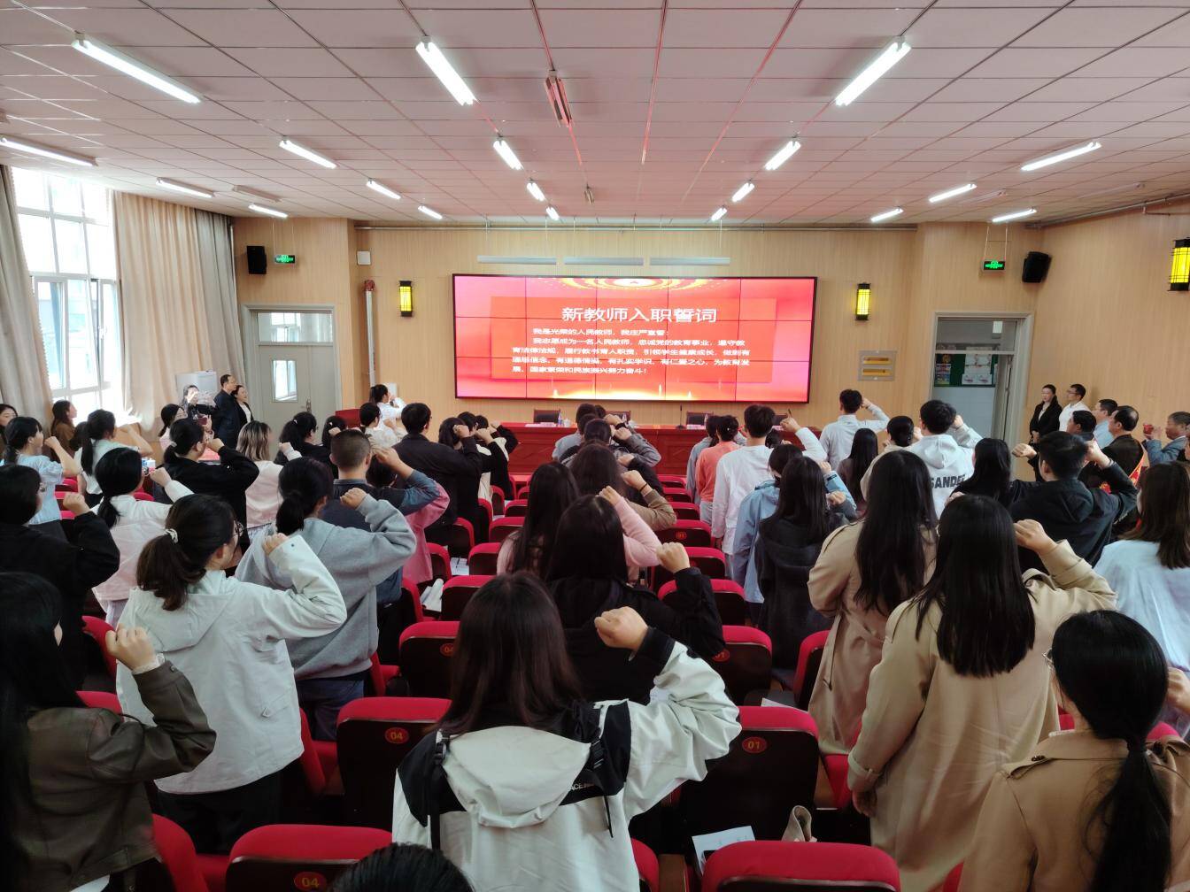 活动尾声,新教师们满怀对教育事业的热爱和对未来的憧憬,进行了庄严宣誓。蓬勃朝气的新入职教师从老教师手中接过了振兴莱阳教育的历史重担,他们用铮铮誓言表达了献身莱阳教育的坚定决心!