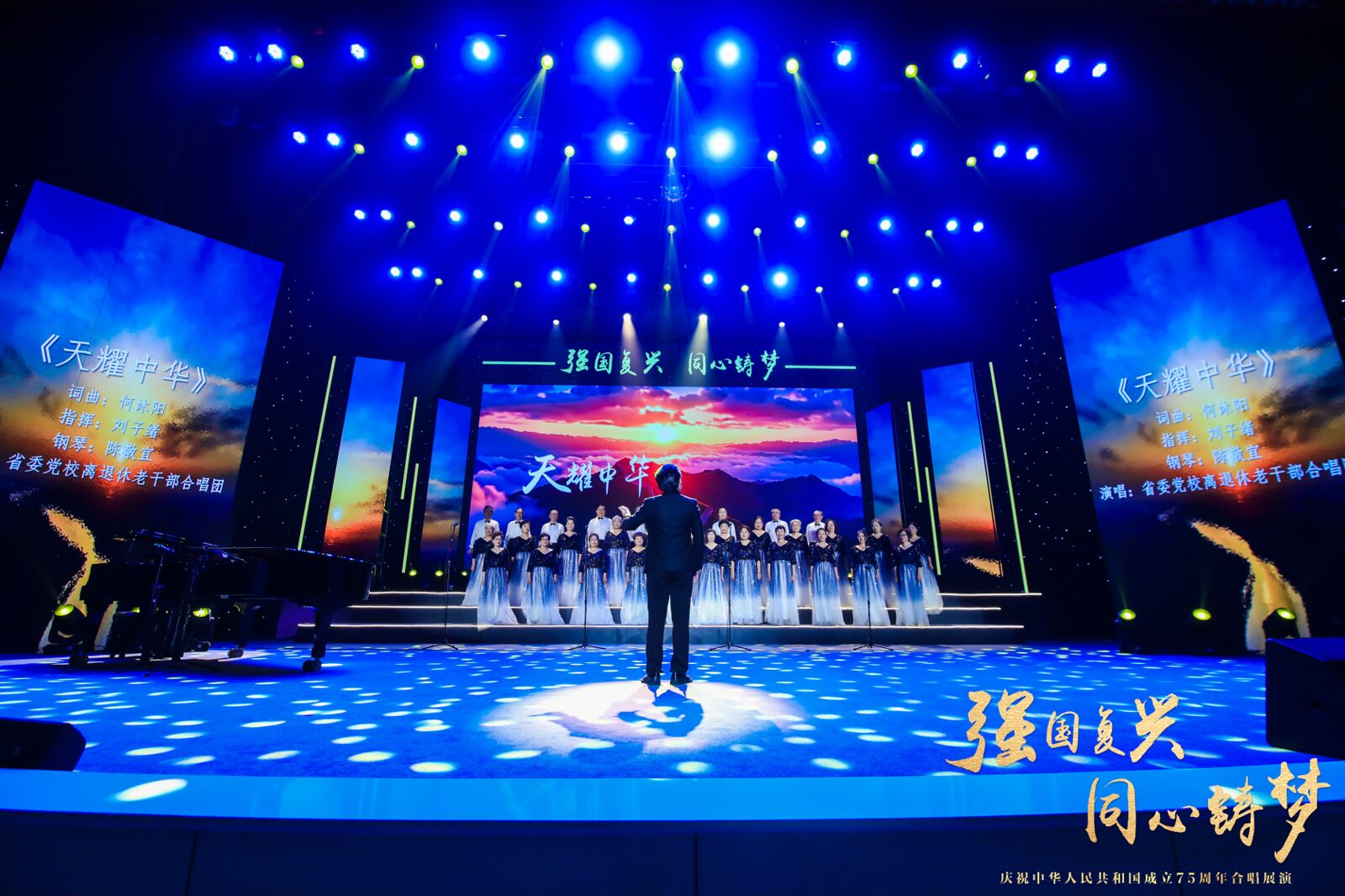 山东省委党校(山东行政学院)离退休老干部合唱团、中青班学员、研究生合唱团、教职工合唱团先后登台,满怀赤子之心唱响《天耀中华》《跟着共产党走》《不忘初心》《红旗飘飘》《共筑中国梦》《今天是你的生日,中国》等主旋律歌曲,以嘹亮的歌声和饱含深情的表演,唱响对伟大祖国的无限热爱与深深眷恋。