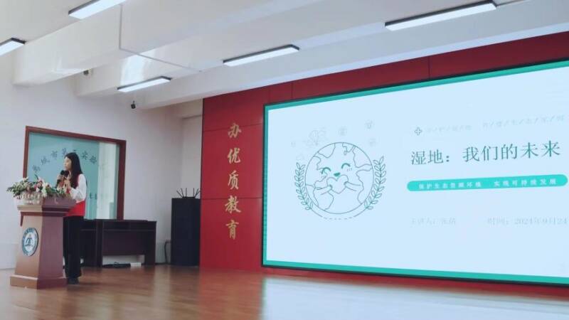 科普课堂上,湿地公园工作人员围绕认识湿地、世界湿地日、中国湿地现状和守护湿地之美等四个方面进行授课,详细为同学们介绍了湿地中的各类植物,如芦苇、香蒲等挺水植物,睡莲、浮萍等浮水植物以及沉水植物。同时,还逐一介绍了湿地里丰富多样的鸟类,普及湿地生物资源、观鸟常识,让孩子们了解家门口的湿地,提高大家湿地保护意识。活动现场还组织了湿地知识竞答环节,加深大家对湿地知识的认知。