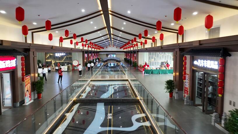 服务区主体建筑首次在国内提出“院落式”服务区概念,仿照台儿庄古城外观,将斗拱、飞檐等中式元素融入建筑、景观及室内设计,为游客创造良好的体验空间。凭借独特的院落设计,该服务区建成全国首家“边界文化”服务区、全国首家“开放式+庭院式”服务区,荣获2022年国际缪斯设计金奖,并成功申请国家AAA级旅游景区。