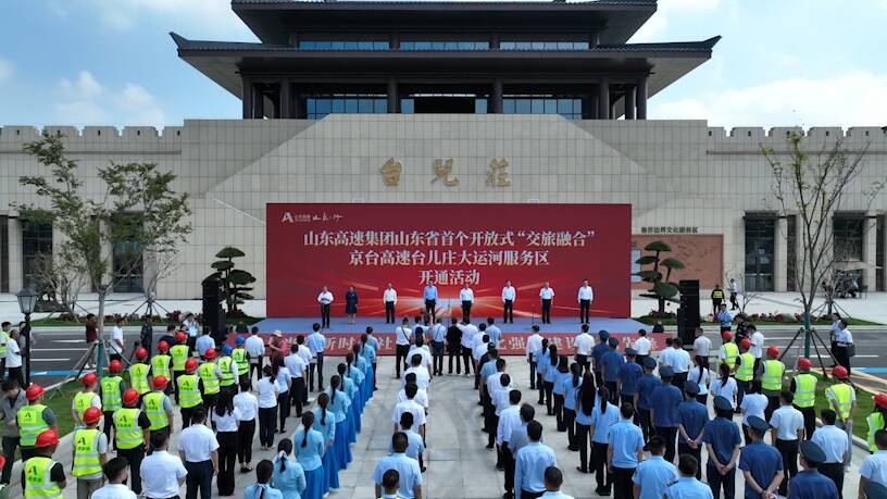 齐鲁网·闪电新闻9月29日讯 9月29日,由山东高速集团投资建设的台儿庄大运河服务区顺利开通。枣庄市委副书记、市长翟军出席。山东高速集团党委副书记、总经理孙付春致辞。山东省交通运输厅二级巡视员于培科,山东高速集团党委常委、副总经理房建果,中国公路学会监事长、服务区首席专家巨荣云,市、区领导彭照辉、朱艳峰、刘晓璐、孙作伟、张天峰参加。
