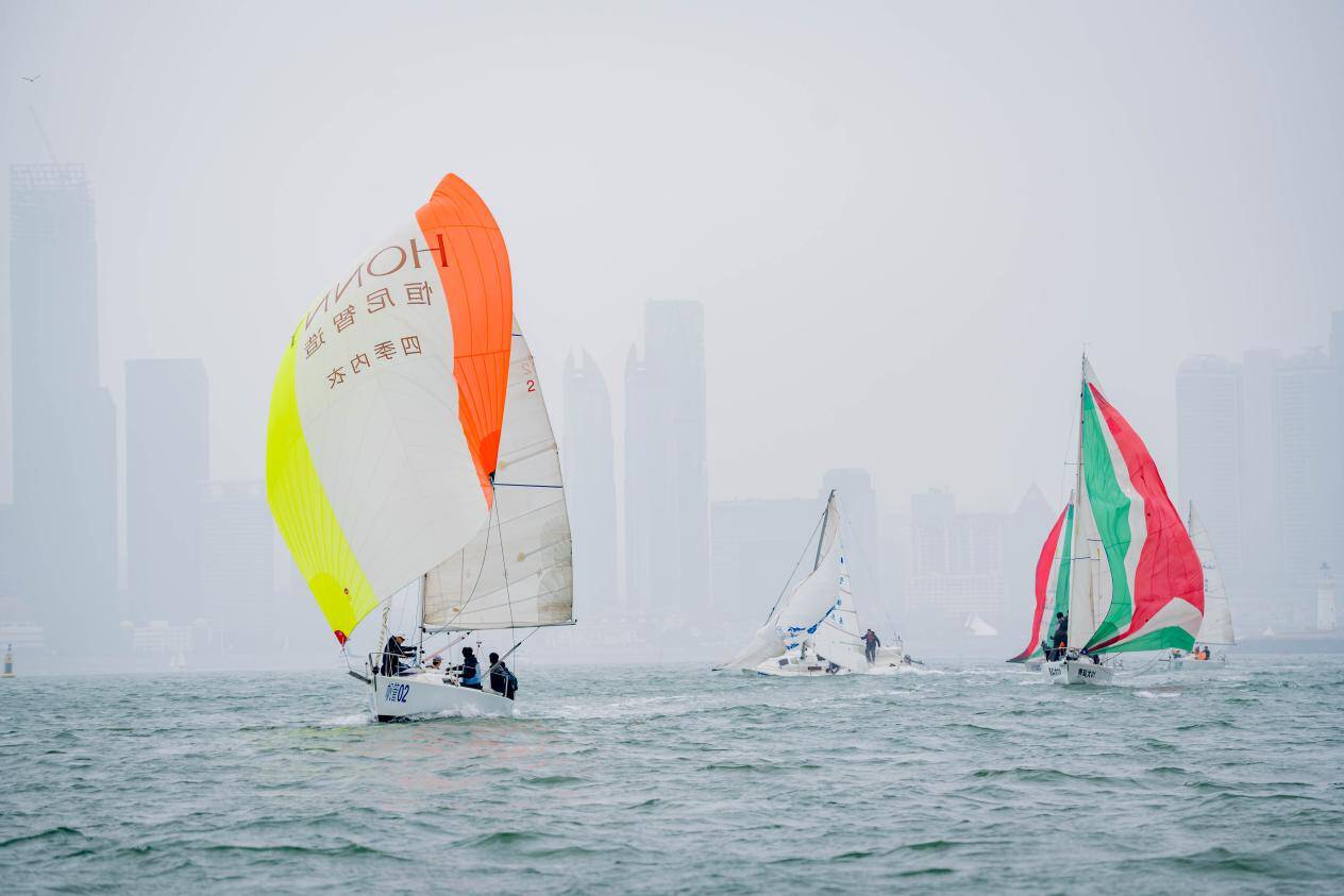 不止陆地的比赛精彩激烈,海上的帆船比赛火热展开。本次帆船公开赛在青岛奥帆中心举办,共吸引了12支队伍报名参赛。