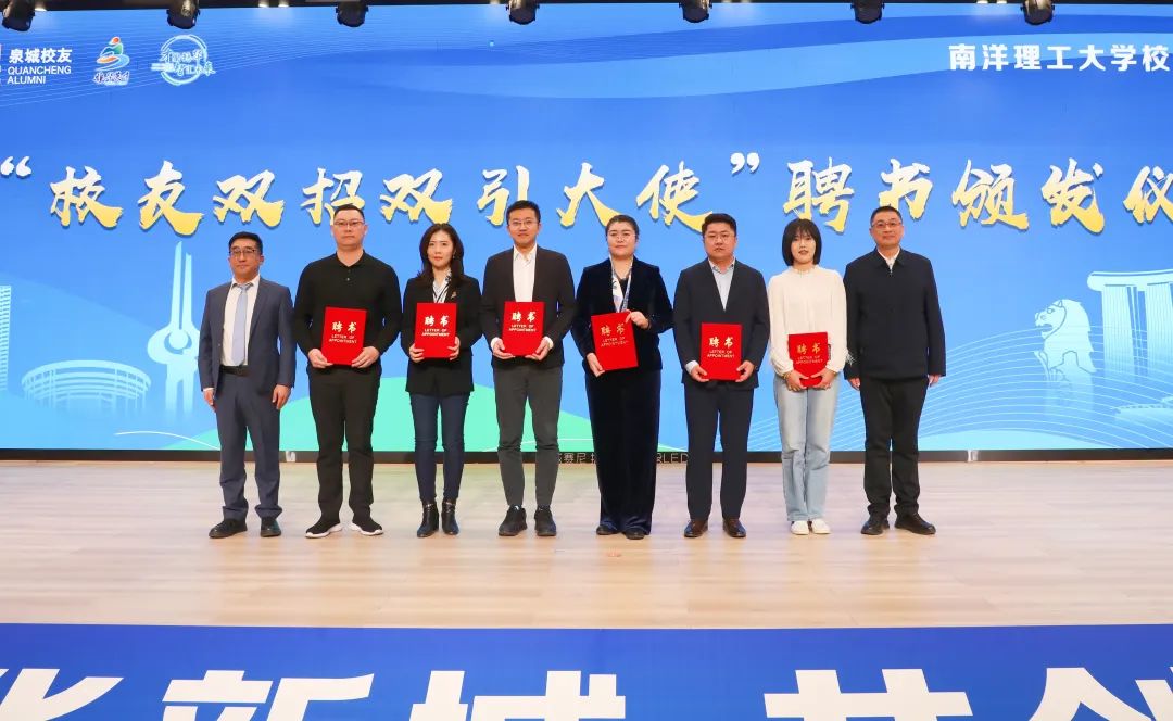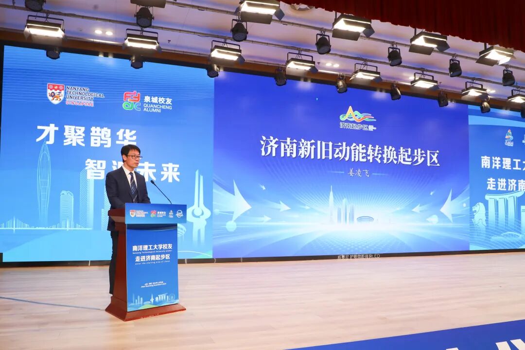 活动现场,起步区管委会党群工作部部长姜凌飞对起步区进行了全面推介,展示了起步区在政策、产业、人才等方面的优势。新加坡南洋理工大学校友代表张凯在发言中表达了校友们对参与起步区建设的浓厚兴趣和坚定决心。吴涛同志为校友代表颁发“海右引才卡”,济南市贸促会党组成员高小扬、起步区管委会产业促进部副部长潘兵为校友代表颁发“校友双招双引大使”聘书。新加坡南洋理工大学山东校友会会长李翠翠与中新绿色科技研究院副院长王宇德共同为“南洋理工大学校友济南起步区活动中心”揭牌。