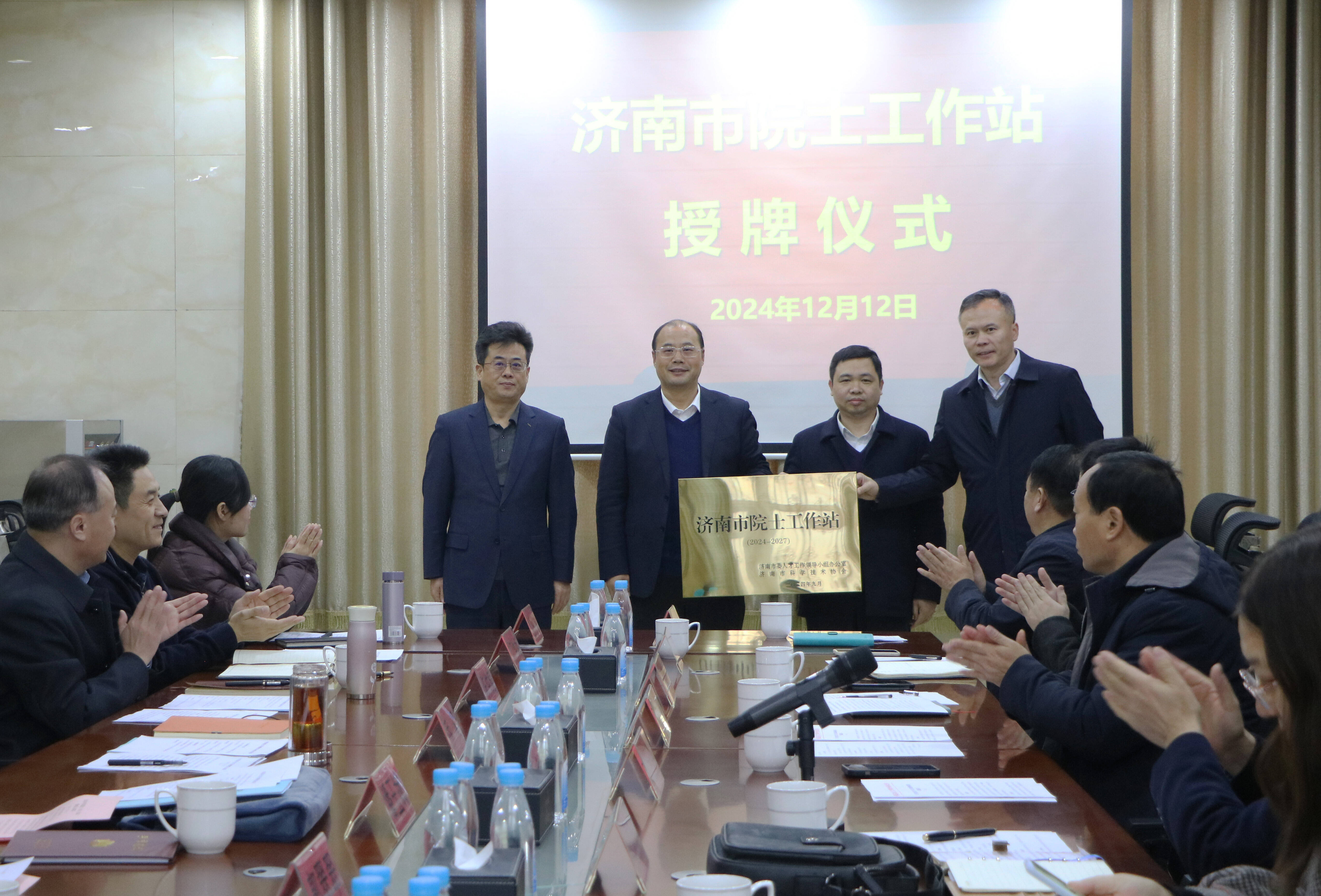 会上,潘玉斌、乔梁共同为济南万瑞炭素有限责任公司院士工作站进行授牌。