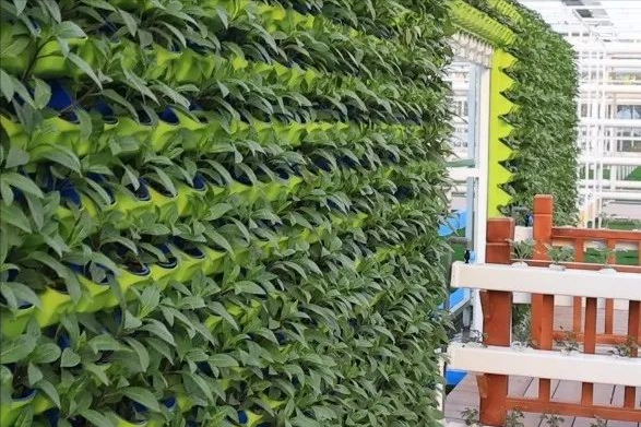 走进温室大棚中,A字架、时空隧道、荷兰模式、仿生螺旋等25种种植模式令人眼花缭乱,犹如走进一座现代化的“植物工厂”。大棚外有智能幕帘,内有全方位环境控制系统,在科技创造出的适宜环境里,各类水果蔬菜以最“舒适”的方式“四季不断”生长。