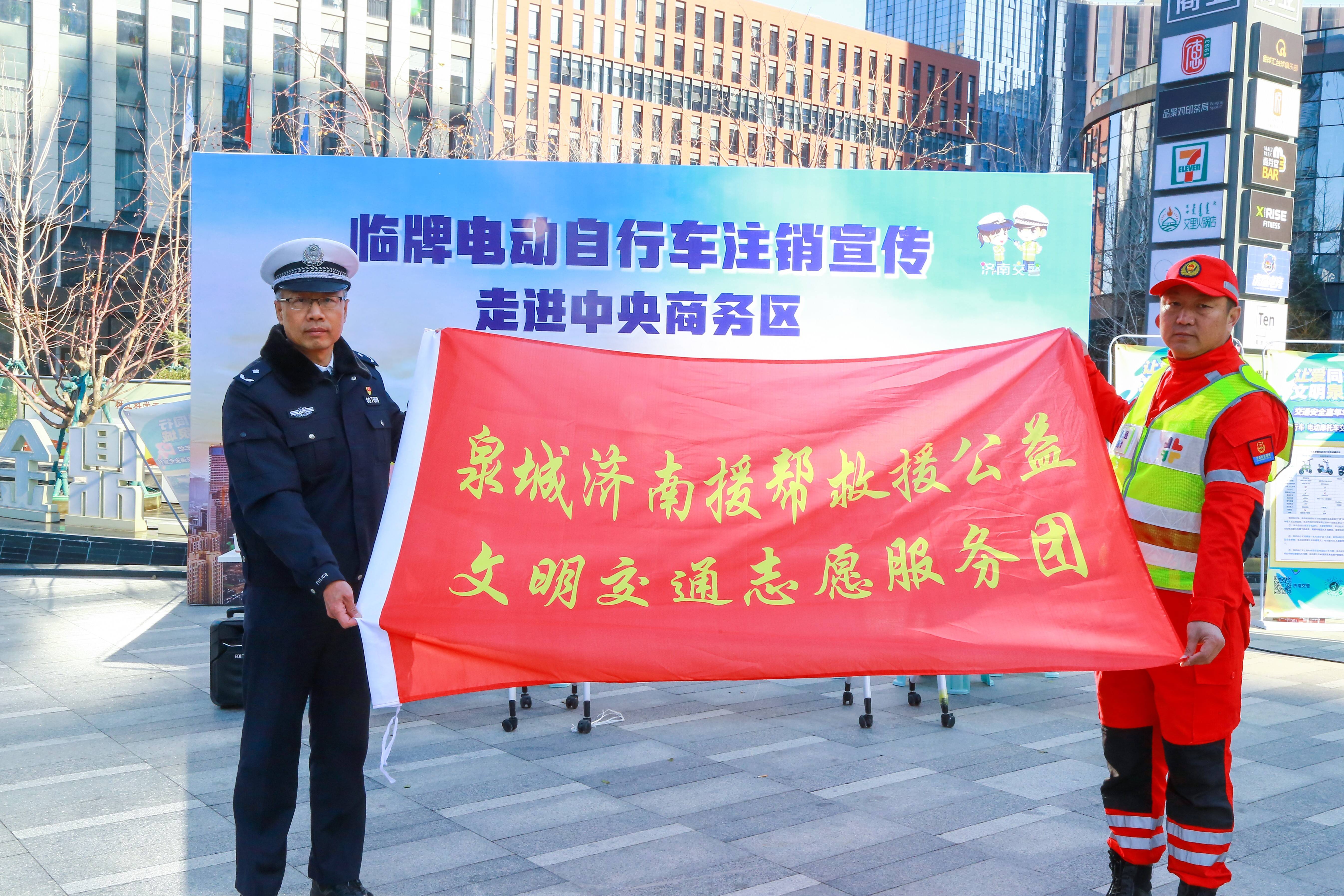 12月18日上午,济南市公安局交警支队历下区大队车辆管理所联合辖区中队、山东济供再生资源有限公司在金鼎中心广场开展电动自行车以旧换新活动。