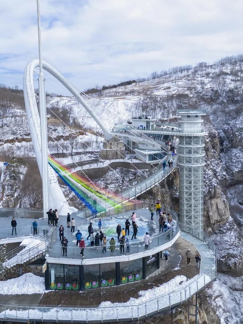 据介绍,景区最新打造矿坑戏雪园、玻璃桥广场戏雪园等两处免费戏雪场地,提供雪圈滑道、樱花转转、无动力雪橇、雪地摩托等冰雪游乐项目,让亲子、家庭、情侣等在冰雪世界中尽情玩耍。另外,还提供多项沉浸式冰雪休闲体验,比如玻璃桥广场设立咖啡车;森林木屋打造围炉煮茶,提供森林度假体验;潭溪山庄供应冬日铜火锅,打造冬日美食体验。游客还可入住野奢度假民宿,体验“冰火两重天”。