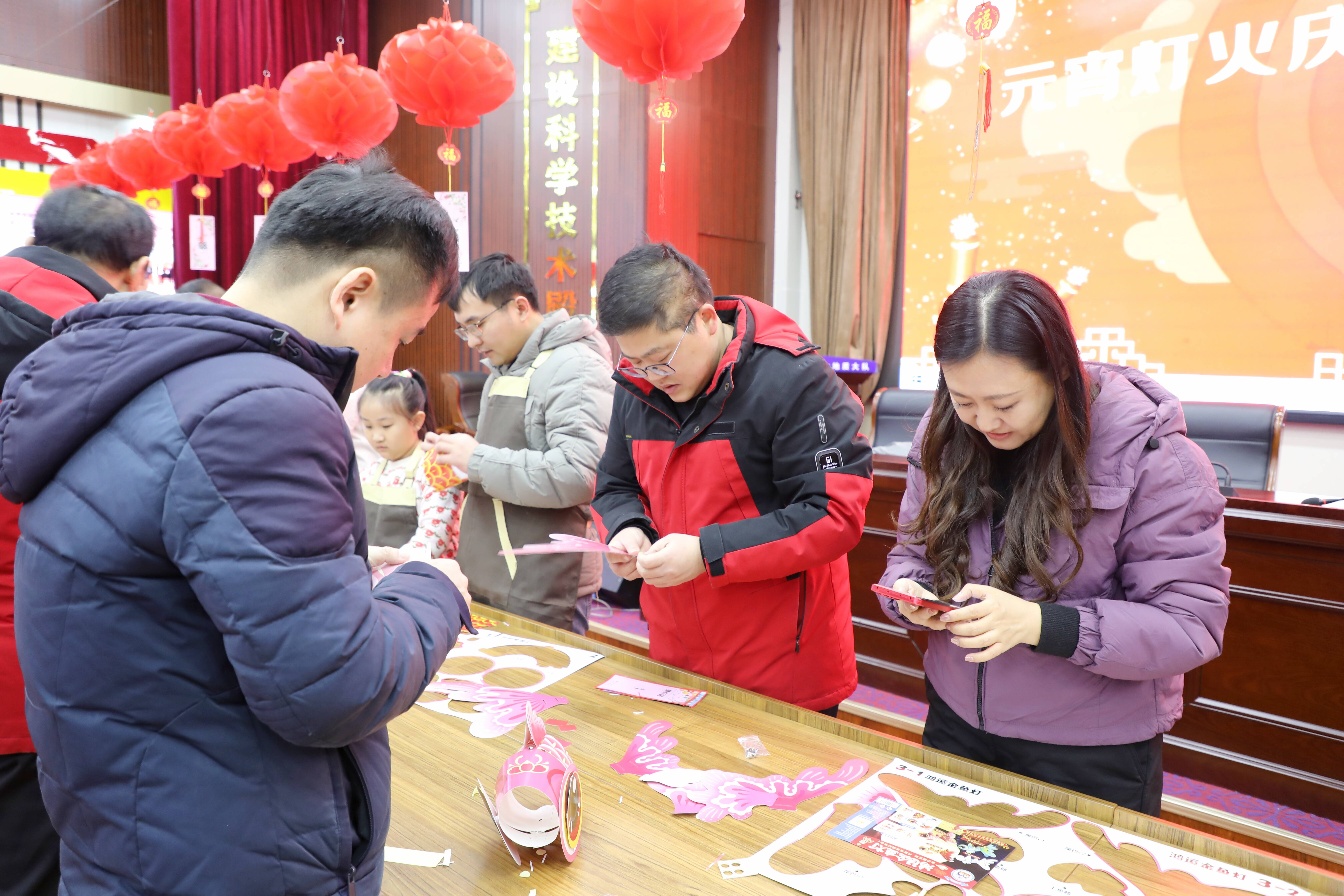 亲子扎彩灯活动更是亮点纷呈。家长与孩子共同合作,利用彩纸、竹条等材料,共同创作出一盏盏形态各异、寓意吉祥的彩灯。这些彩灯不仅展现了孩子们的精彩创意,更承载着温馨与幸福,为元宵佳节增添了一抹亮丽的色彩。