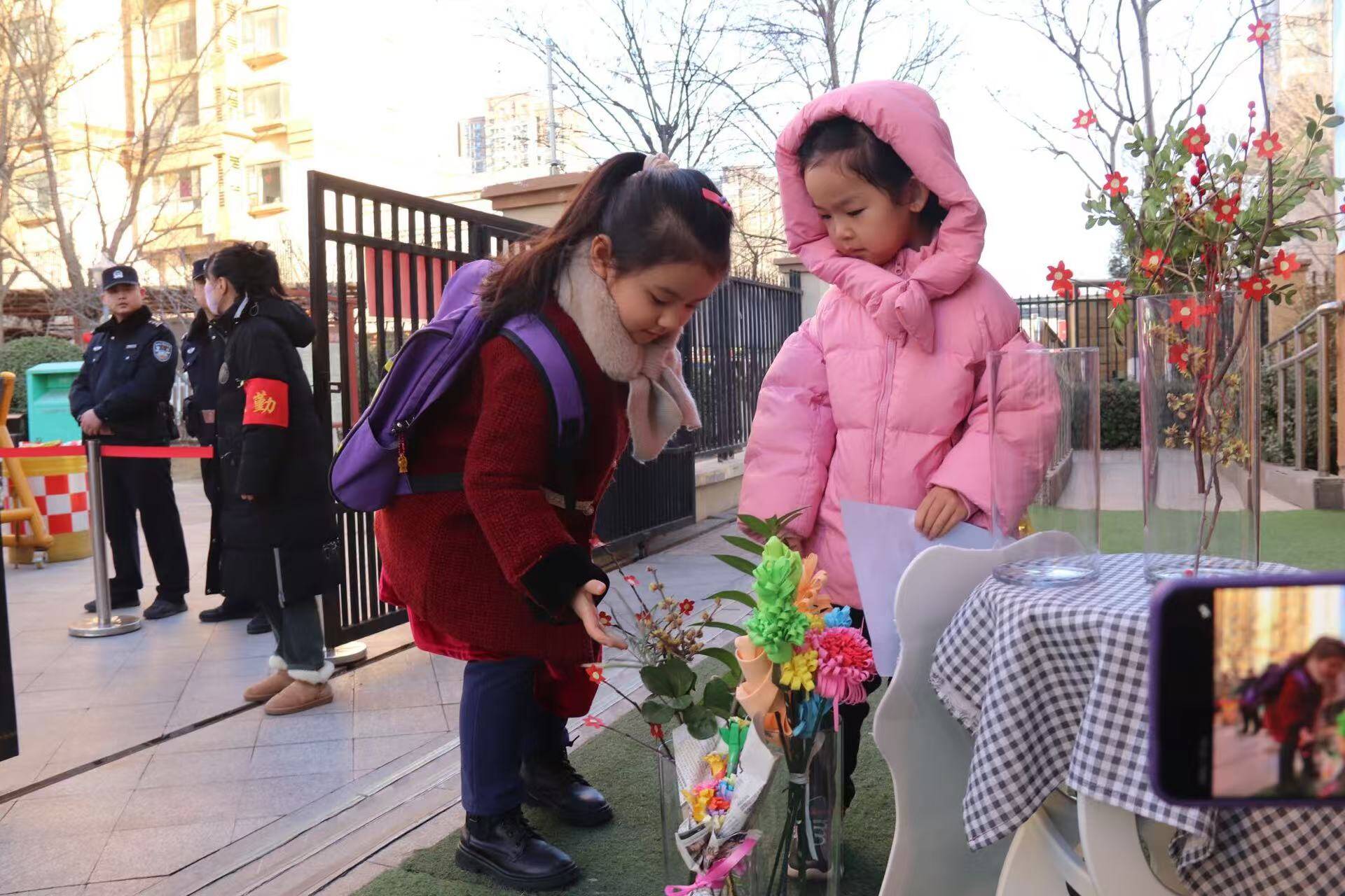2月13日,开学第一天,济南市槐荫区礼乐佳苑幼儿园雅苑分园的老师们早早地守候在幼儿园门口,等待孩子们“回家”。在幼儿园入园门口,老师们手持嫩绿的雪柳枝条,微笑着迎接每一位幼儿。孩子们接过雪柳,带着好奇与欣喜,在众多花盆中挑选出自己心仪的那一个,郑重地将枝条插入。这一“赠柳——插春”的打卡环节,寓意着孩子们将如春日柳枝,在新学期茁壮成长,绽放无限生机。