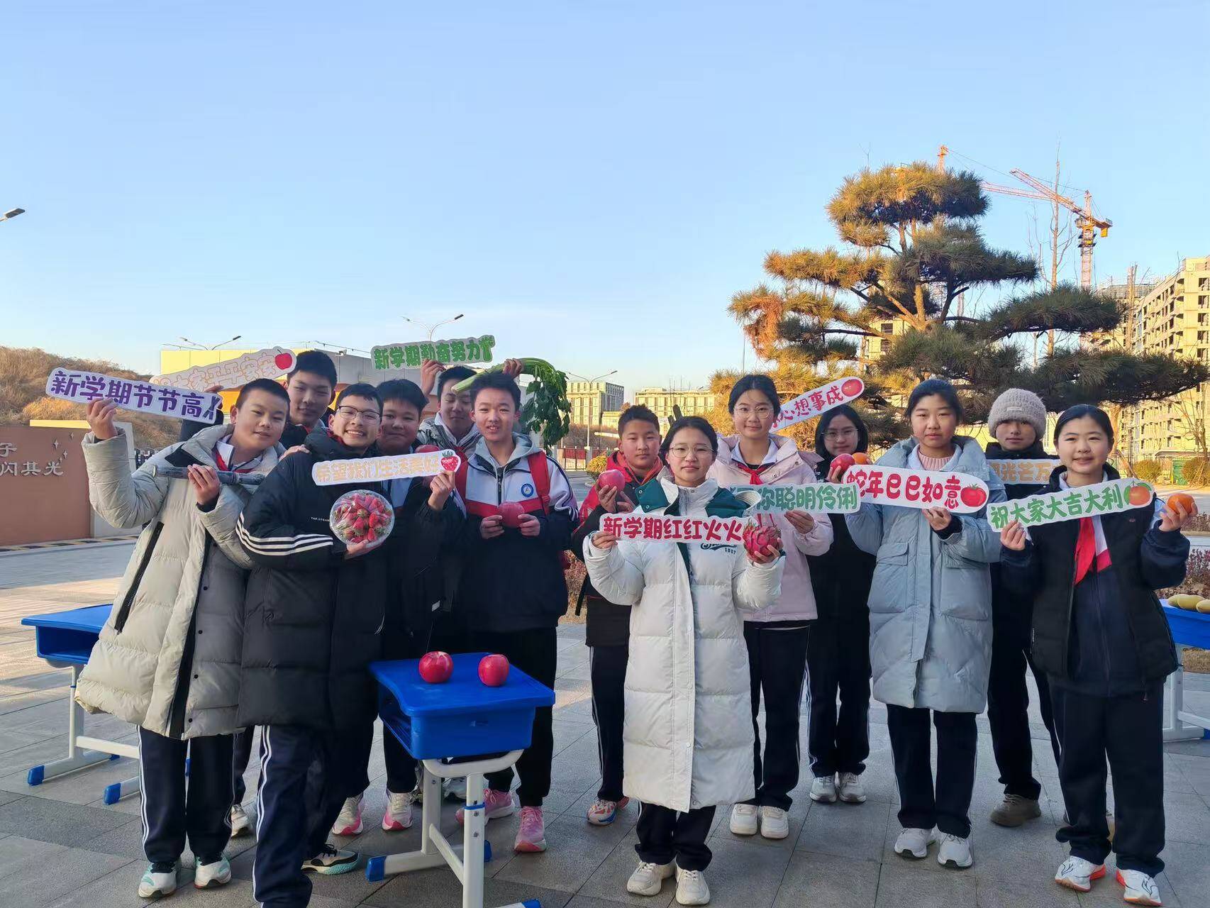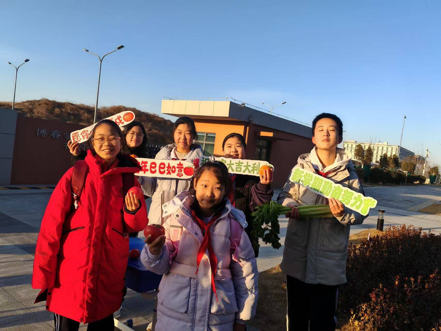 2月13日,济南市槐荫区博睿学校精心准备了各类新鲜果蔬,作为新学期的特殊礼物。红彤彤的苹果,寓意着新的一年“平平安安”;金黄的橙子,象征着“心想事成”;翠绿的芹菜,代表着“勤奋好学”。孩子们兴奋地穿梭其中,亲手触摸这些饱含祝福的果蔬,新奇与喜悦洋溢在每一张小脸上。这种独特的迎新方式,不仅传递了美好祝愿,也让开学第一天充满了仪式感!