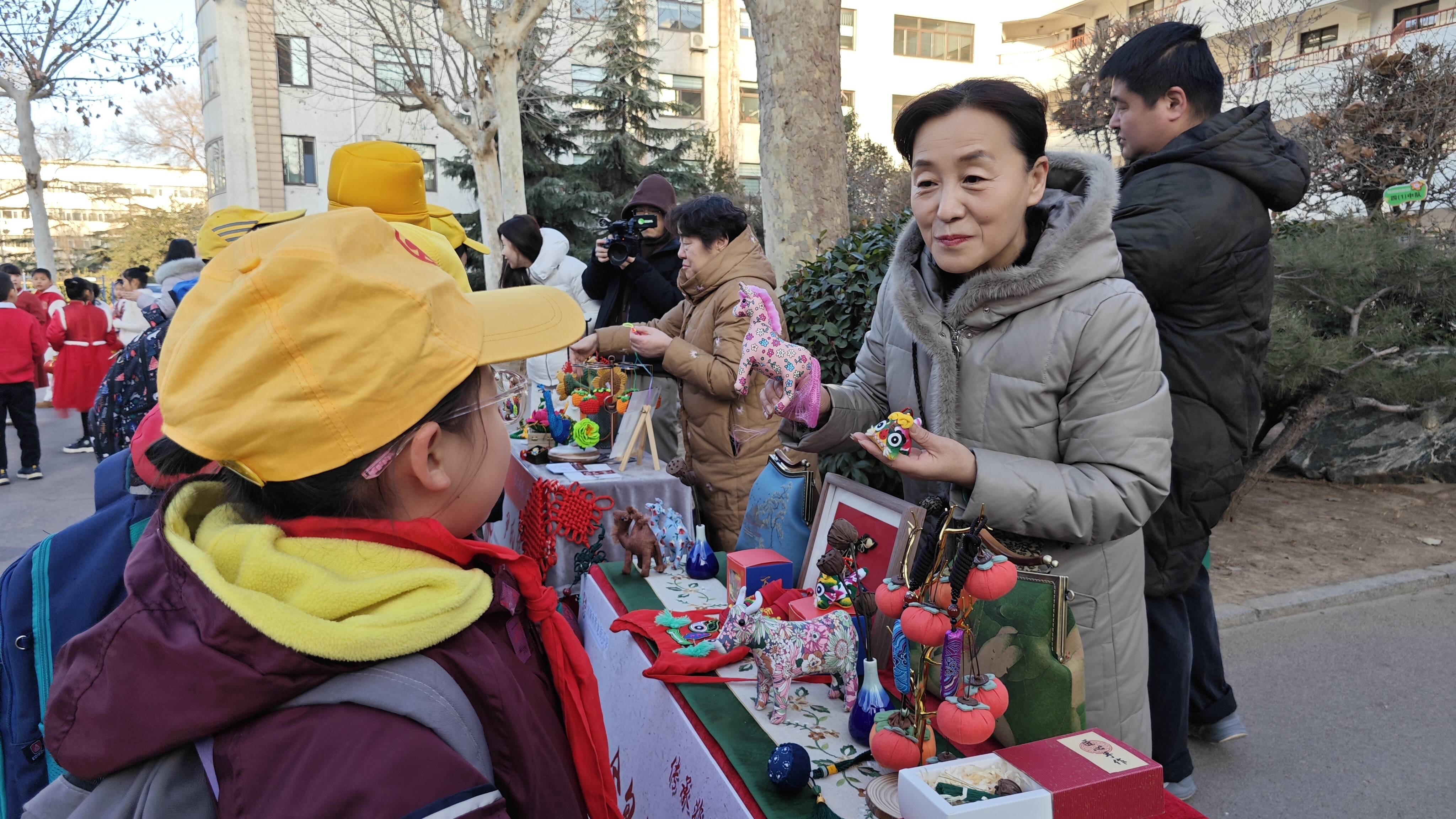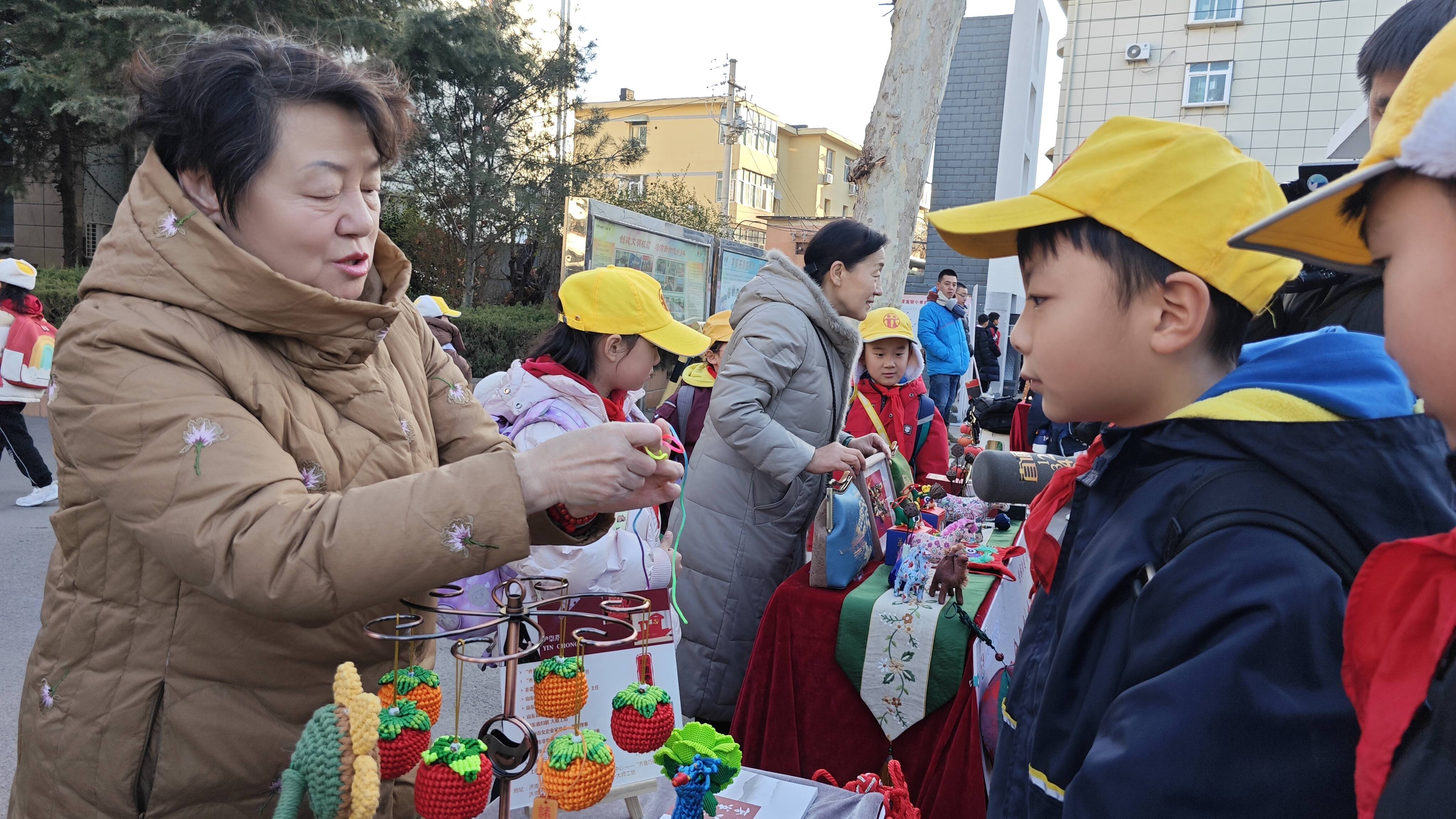 开学第一天,非遗市集搬进济南市青龙街小学,为师生带来一场传统文化盛宴。