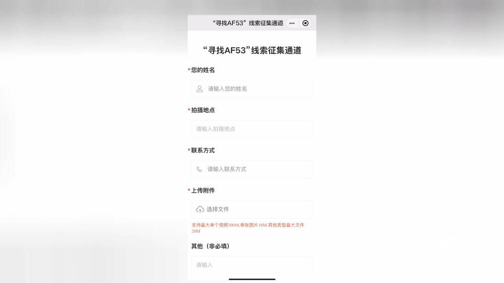 “寻找AF53”活动持续进行中,如果您有相关线索,可以通过闪电新闻客户端“寻找AF53”专区上传。