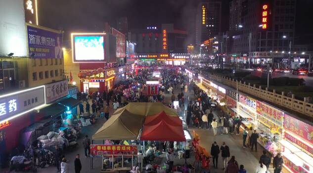 华灯初上。夜幕中的潍坊诸城龙城夜市,人头攒动,弥漫着浓浓的烟火气息。夜市上,摊位整齐排列,各色美食琳琅满目。摊位前,摊主们忙得不亦乐乎。