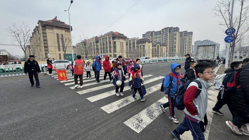 尽心守护,共筑成长之路。守护,是一种传递,更是一份责任。学校立足细节,为群众做实事。“护学岗”架起安全的屏障。由学生家长和学校老师共同组成,每天上学、放学统一着装,手持旗子指挥学生、家长有序出入校,并对不文明的行为进行制止,保护每一位学生的安全,连接起了学校和家庭的安全通道,促进了家校和谐。