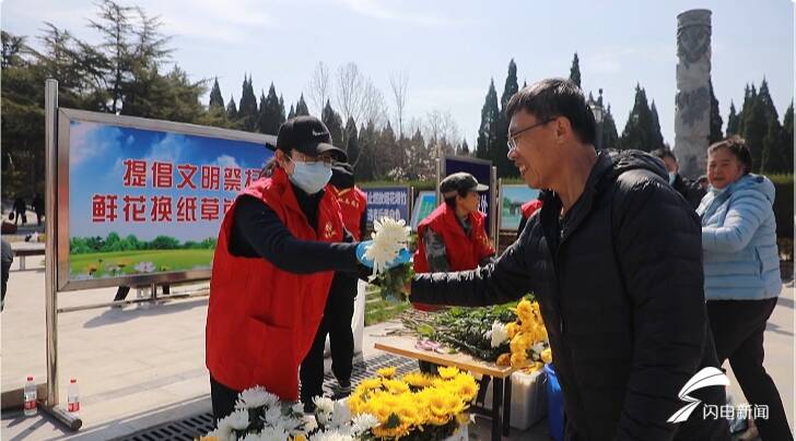 此外,潍坊市殡葬事业服务中心还采购了1.2万支鲜花,免费发放给市民,引导他们积极参与绿色祭扫,以文明的方式缅怀先人、寄托哀思。潍坊市民张秀玲告诉记者:“鲜花也能代表儿女对父母的哀思,我觉得绿色祭扫方式很好,应当大力提倡。”