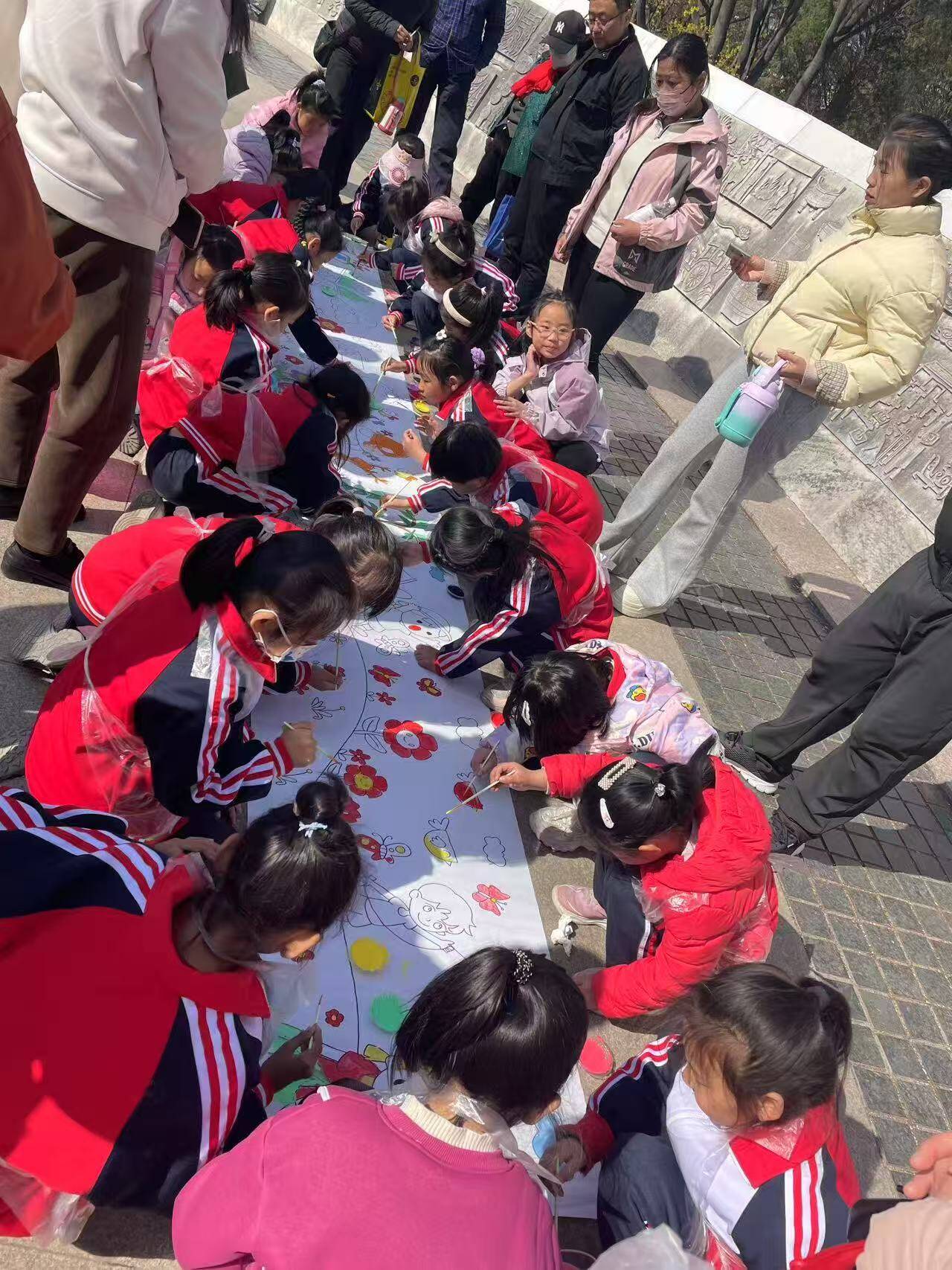 活动现场,一幅《寻找春天》的长幅画卷在同学们的画笔下徐徐展开,嫩绿的新芽、绽放的花朵跃然纸上。精心收集的各色花叶,通过创意拼贴制作成独一无二的自然书签,将春日的美好定格成永恒的记忆。随后,同学们向游客发放爱绿护绿倡议书,用实际行动呼吁大家共同保护生态环境。