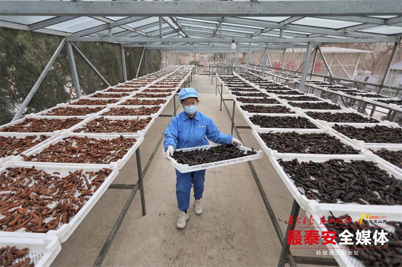 大津口乡李家泉村,泰安市泰山景区无恙堂健康产业有限公司加工车间里,工人们正忙着将黄精进行分选、蒸煮、晾晒、包装,到处弥漫着中草药的芳香。
