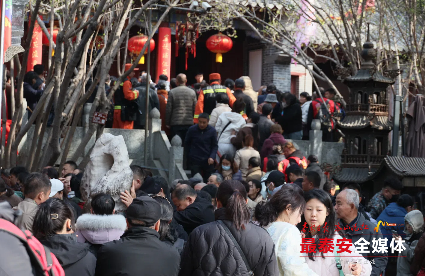 王母池院内,烟火气十足的同时,秩序井然。据了解,为确保民俗节日期间祈福游客人身财产安全,泰山景区虎山管理区提前召开民俗节日工作部署会,研判客流量情况,制定应急预案,组织节前安全检查,按照“一级响应、五级节流、网格布局”的工作模式,切实做好王母池的秩序维护、人员疏导、文物防火安全等各项工作。