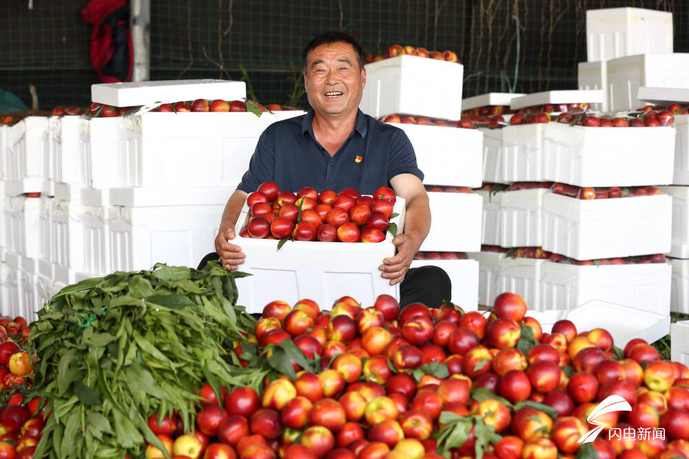 “今天收购的油桃单价在8元—13元,油蟠桃最高每斤18元。油桃品质那是杠杠滴,市场反馈非常好。”来自安徽的油桃商贩田中华,连续十多年了,每年4月份油桃上市时,他都会住在果庄两个多月。