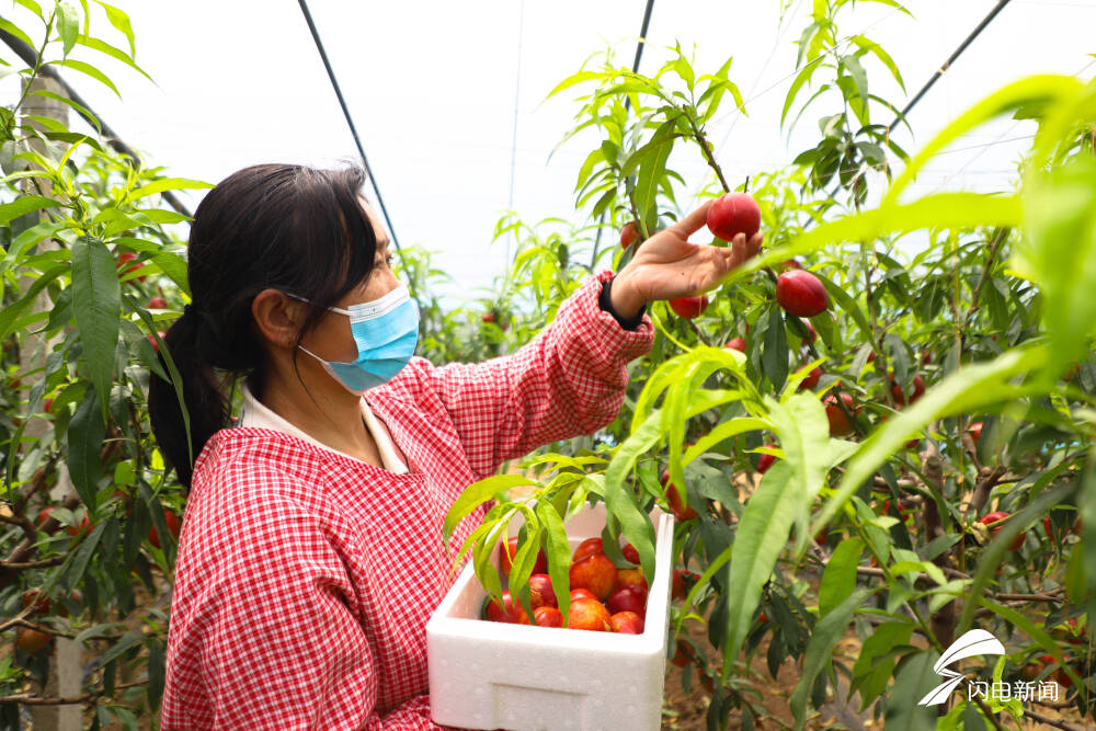 齐鲁网·闪电新闻5月7日讯 “今年油桃比去年还好,提前了十多天上市。”早上五点,天蒙蒙亮,在山东莒县果庄镇张家海坡村,桃农张隆田一手提着一个塑料桶,笑眯眯地从油桃大棚里钻出来,染着胭脂红的油桃,娇嫩欲滴,很是诱人。