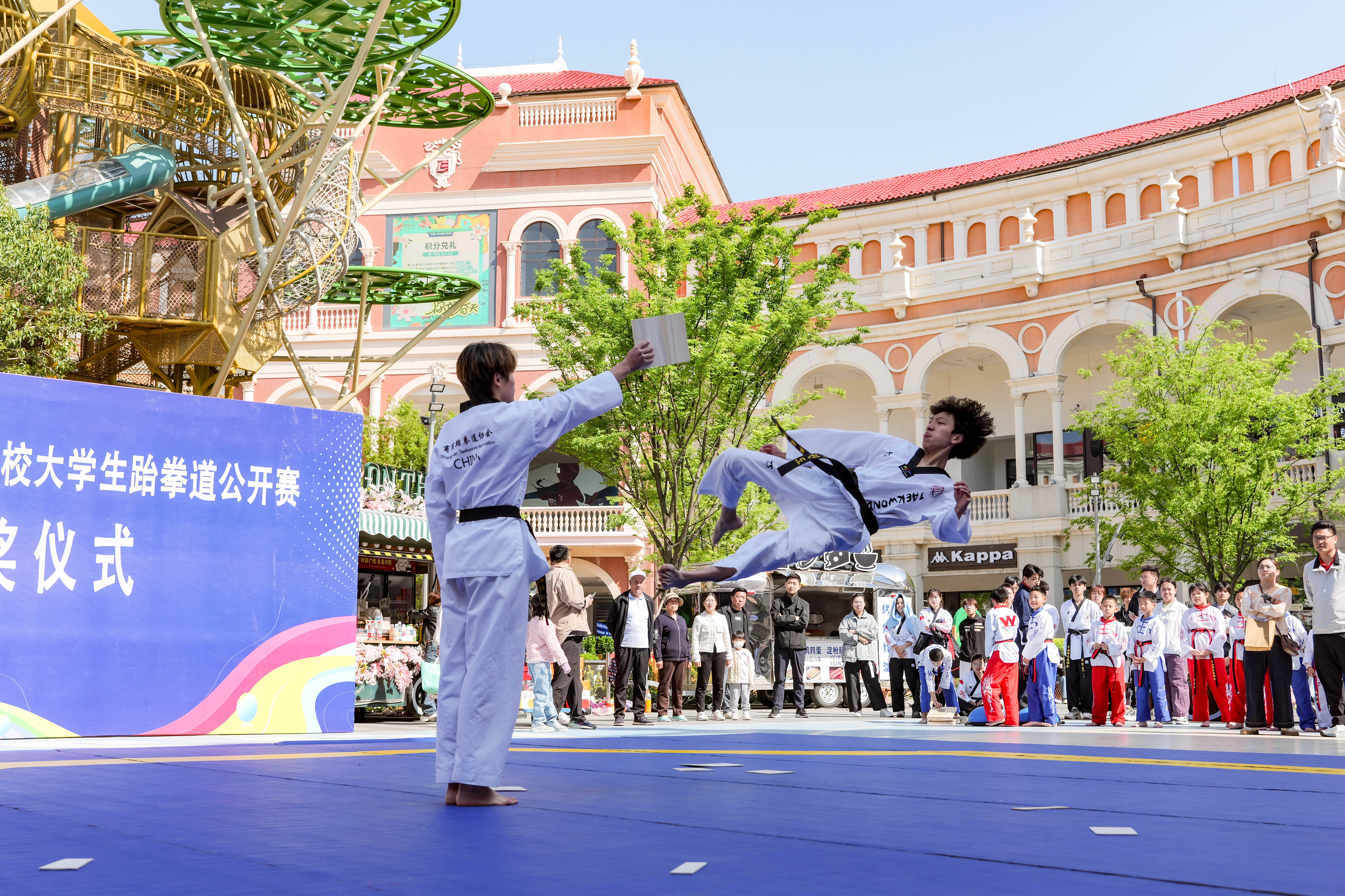 作为山东省高校跆拳道项目的重要赛事,本次比赛吸引了来自22所高校的近200名大学生跆拳道爱好者报名参加。比赛设竞技、品势、特技动作等项目。赛场上,运动员们用精湛的技艺和顽强的斗志,展现了跆拳道的独特魅力与青春风采。