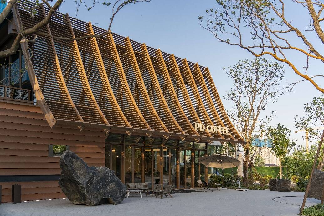 沿街商家的屋檐,或如飞檐昂扬,或如平檐内敛;街角处的自营咖啡店,以坡屋顶的形态与悬山泉涌上下映衬,形成独特的艺术地标;再往前,则是约600余平的坡屋顶,更显震撼。这些极具艺术气息的细节设计,在归家途中形成了一道唯美的天际线,抚慰着从喧嚣中归来的居者。