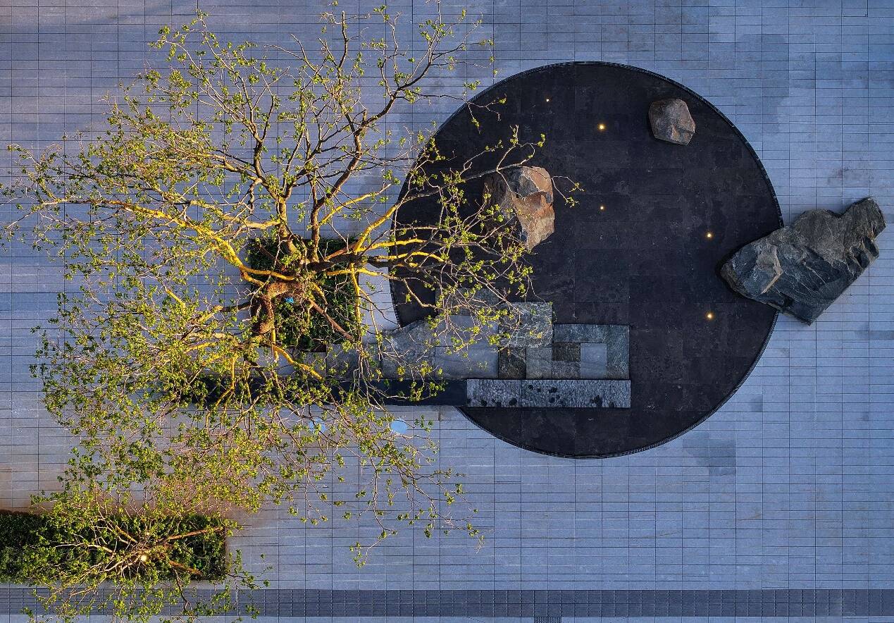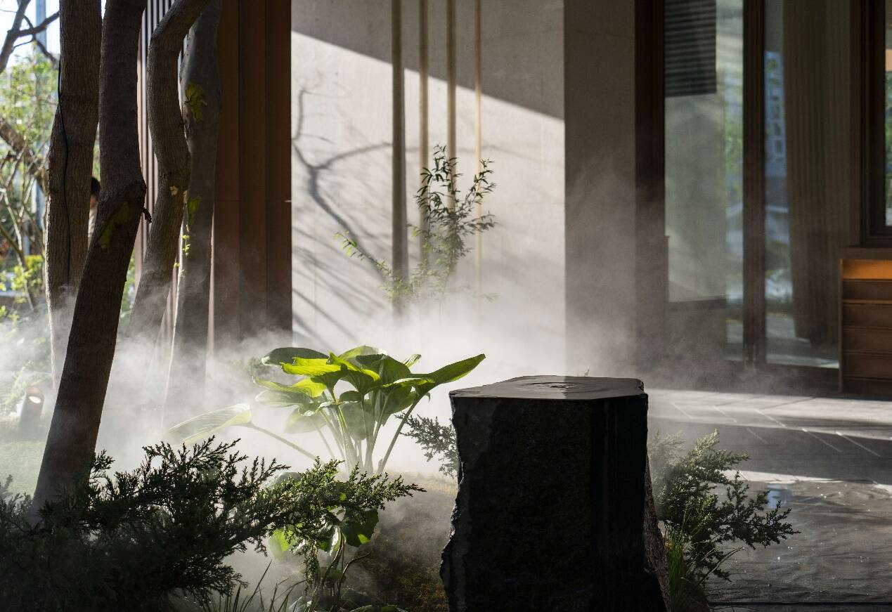 在归家门庭处,石头、苔藓、草木等实物通过艺术化的组合,却能衍生出「一池三山」的仙境况味,犹如神游太液、心往蓬莱,予人一种如梦似幻的空间享受。