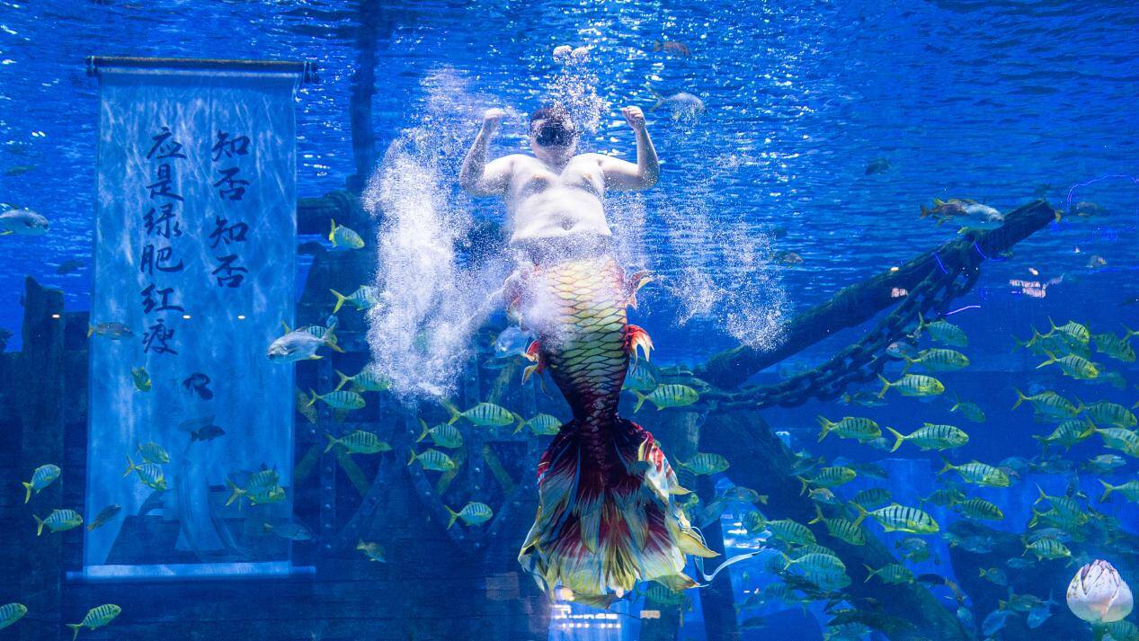 同样是下午到融创乐园游玩的还有来自德州的陈先生一家,他们上午去了海世界。“我们全家穿越海底隧道、来到沉船宝藏区,见到网红胖人鱼,他真的特别搞笑,我还拍了视频发了抖音,我觉得能火。”海世界推出了沉浸式互动演出《灯海奇遇记》,以趣味剧情引导大家探索海底世界的秘密,边玩边学,轻松get海洋知识。还有《荷间锦鲤》美人鱼秀、《猪鲤与美肚鲨》《海豚海狮秀》等主题演艺,精彩不停歇。