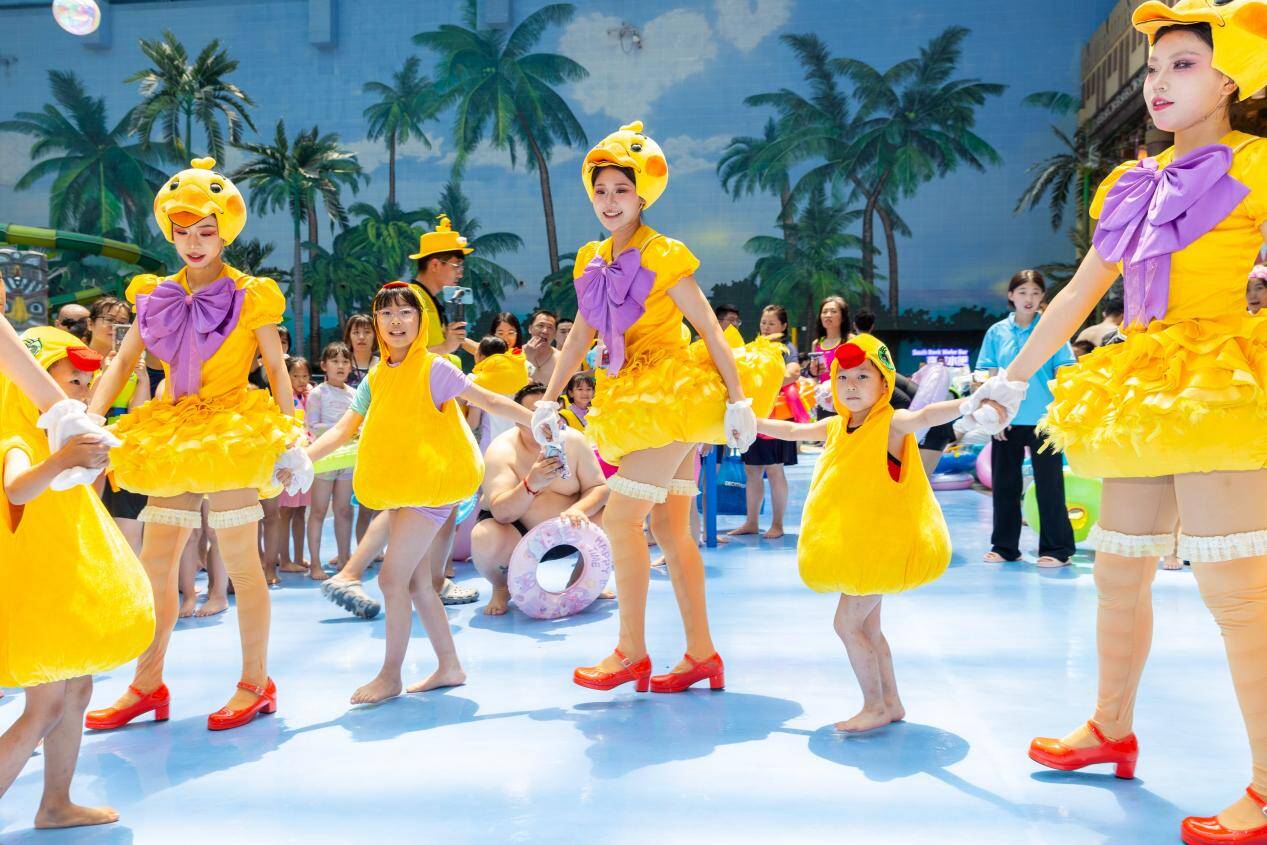 济南连续几天的高温,无法阻挡激情与欢乐的躁动。“我们上午去了水世界,就喜欢这种室内玩水的地方,水质不错,也不用怕晒伤。那里有个“燥浪鸭”寻宝活动,还能免费认领一只鸭,连我们大人都觉得很有意思。”来自河北的李女士陪孩子在水世界玩了一上午,大家都很喜欢“来浪一夏鸭”的主题活动,憨态可掬的燥浪鸭更是让人忍不住疯狂合影。下午他们一家人又到了融创乐园,准备参加泼水节狂欢大巡游活动,计划晚上再看《梦回西楼》。