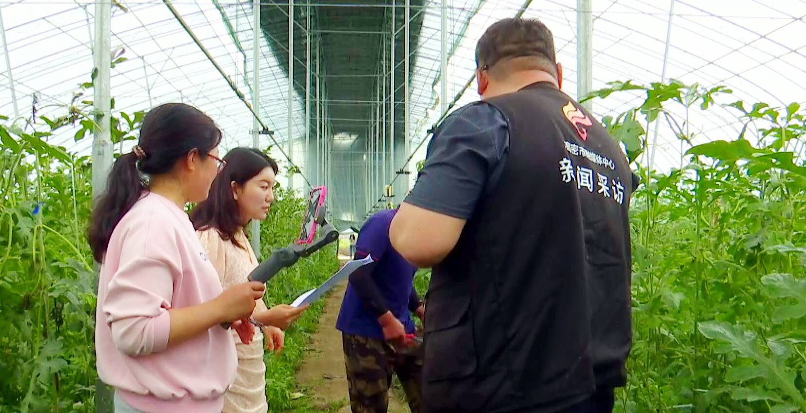 “乡村振兴,乡村而行,我的家乡我宣传。今天,我们高密融媒助农小分队,来到了大美柴沟。今天,我们给大家带来哪些优质的农产品呢?让我们跟随记者的镜头一起去看看吧。”在高密市柴沟镇五龙河现代农业智慧园里,记者看到高密融媒助农小分队的主持人郭萃正在通过镜头向大家介绍本地的西瓜。
