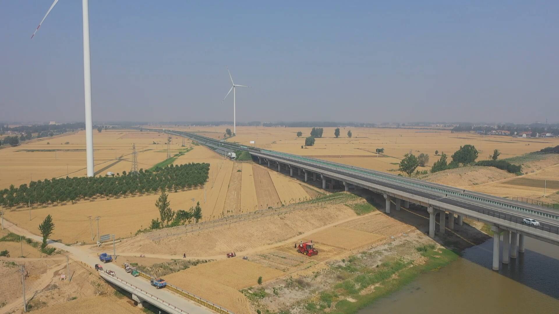 把精细化管理贯穿小麦生长全周期,成武县构建起完整的"从种到收"保障链条:秋播环节优选良种、精细整地、科学播种,确保苗齐苗壮;生长期精准调控水肥,全域覆盖"一喷三防"高效植保;收获季则通过机械化高效作业,最大限度减损增产。据成武县农业农村局介绍,目前全县已统筹调度2700余台联合收割机,根据不同地块成熟时间差异优化作业路线和时序,确保"成熟一块、收割一块",预计未来一周将迎来收割高峰期。