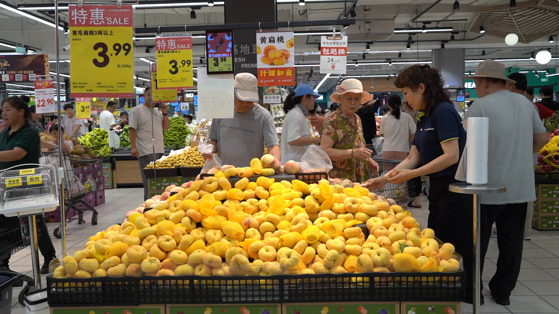 齐鲁网·闪电新闻7月26日讯 伴随着气温升高,青岛商超中的各类水果迎来销售热潮,凉菜、熟食等也成为了市民餐桌上的“新宠”。