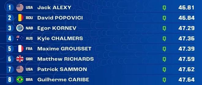 男子100米自由泳决赛,将于7月31日晚上19点32分进行。