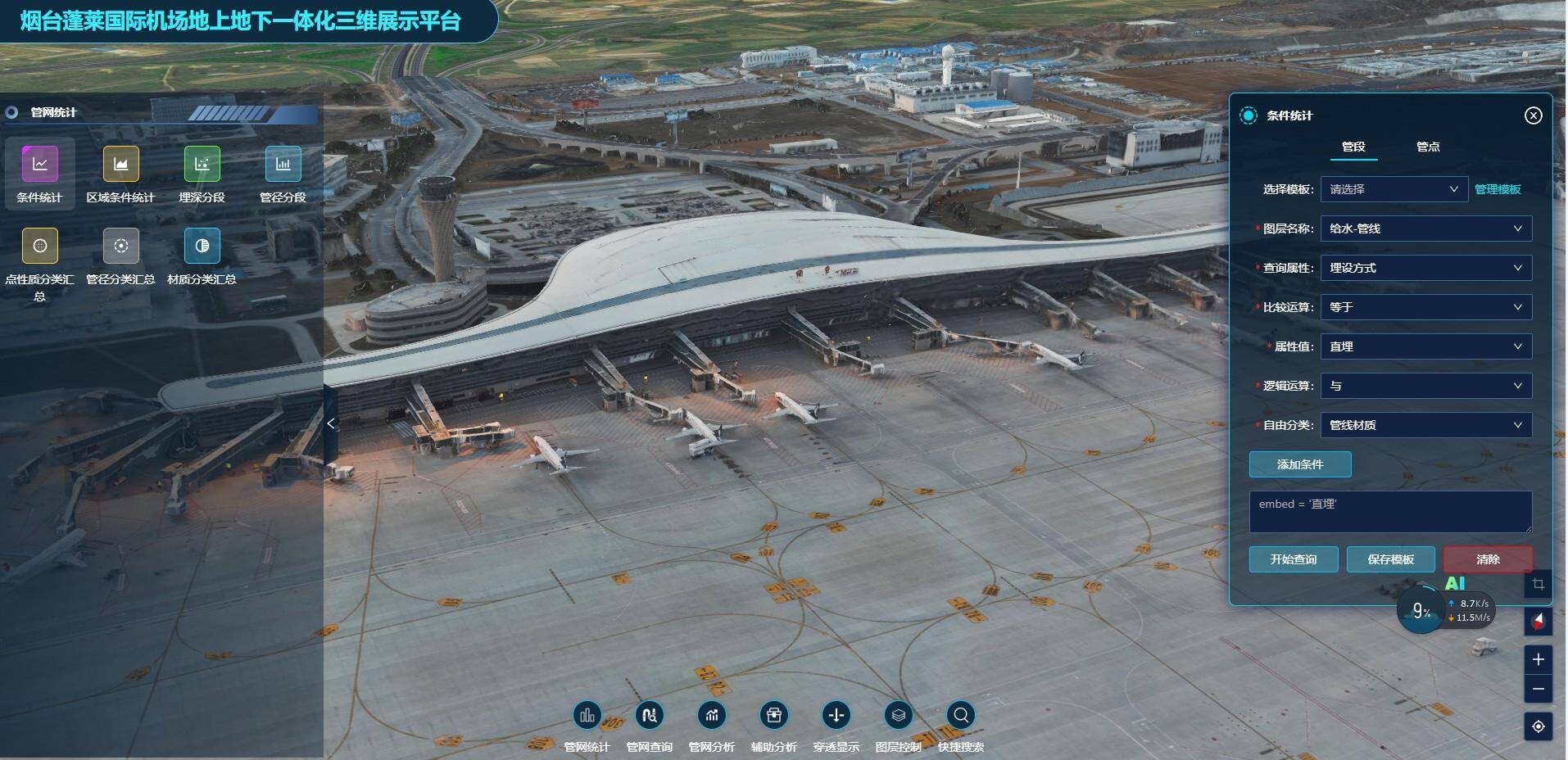 传统测绘产业向新型生产领域全面升级。院党委准确把握新时代新征程测绘地理信息“支撑经济社会发展、服务各行业需求,支撑自然资源管理、服务生态文明建设”工作定位,进一步强化责任意识和使命担当,明确顶层设计,注重创新举措,有力有序推进,加快推动测绘地理信息产业转型升级。构建“数字底座+AI应用”双轮驱动架构,融合无人机+遥感卫星技术,建成高精度三维导航底座,高精度实现地表构筑物AI识别。一队承担的烟台蓬莱国际机场“地上地下一体化三维展示平台”建设项目,将实现约5万米地下管网以及10余万平方米地上建筑物的三维建模和全景可视化,为机场智慧化管理提供精准的数字底座,有力支撑机场安全高效运营。持续服务聊城市地下管线普查及管网三维信息管理系统建设更新,累计完成中心城区100平方千米内,给水、排水、热力、电力、通信等7大类2800余千米管网的物探测量、三维建模和可视化展示,更新完成新竣工21条道路、总长度180余千米雨、污水管网有关数据。拟开展的无棣县地下管网普查及建设管网三维信息管理系统项目,计划完成800千米的管道探测,并为无棣县建成地下管网三维管理系统。