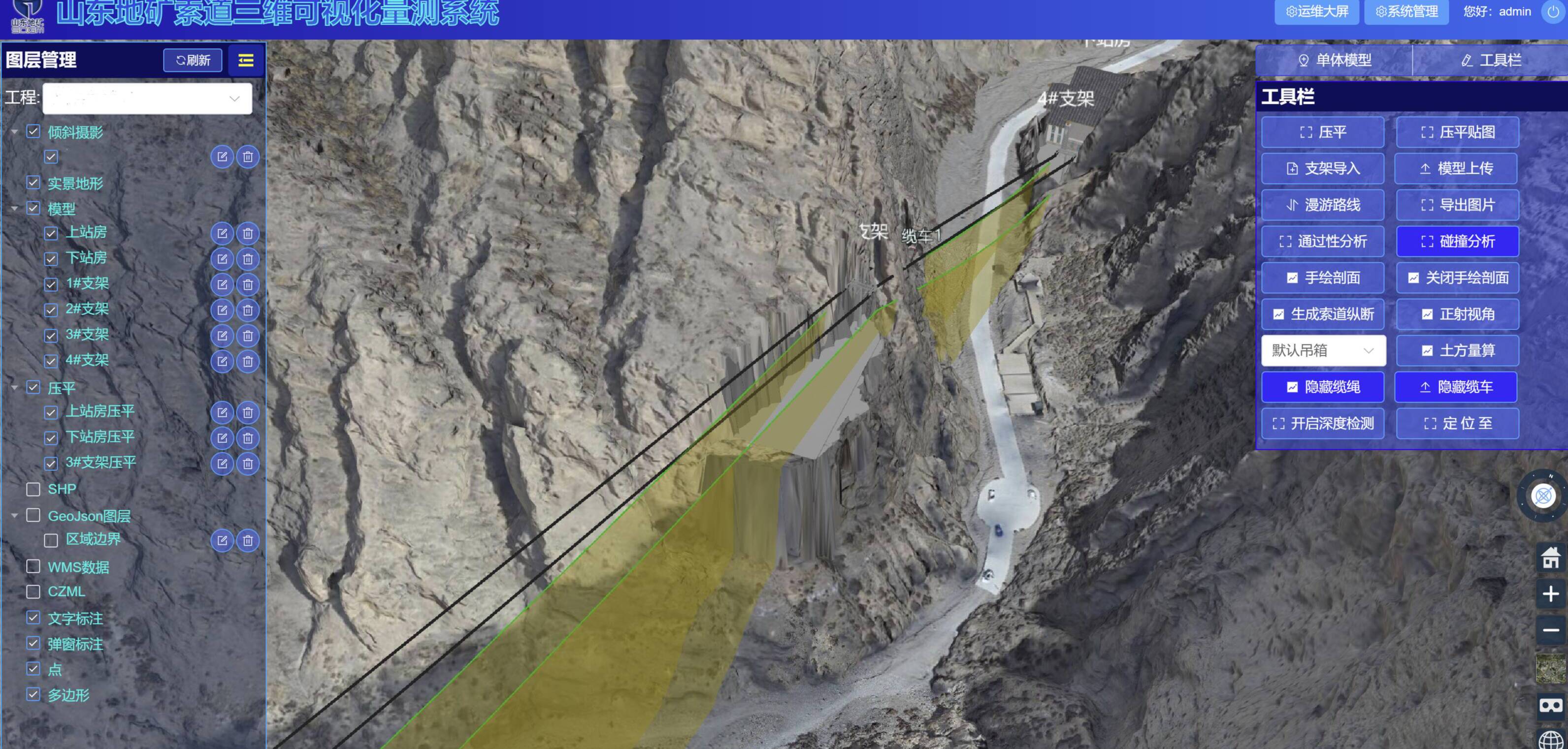 技术场景应用全面升级。在擦亮“索道测绘大王”金字招牌的基础之上,积极响应国家生态文明建设、低空经济发展重大战略部署,强化无人机、雷达等新技术、新装备在索道前期选线中的深度应用,研发了索道三维可视化量测系统,以实景三维模型为底图,将数据管理、服务管理、可视化及三维GIS分析等功能一体集成,彻底解决了传统索道规划设计过程中表达不直观、实景融合不足、动态分析受限等问题,有效提升工作效率和设计可靠性,在应用的黄山太平索道、上海跨黄浦江索道、新疆喀什天门山、青岛崂山等20余个索道项目中,通过AI算法自动优化线路,植被砍伐减少30%,勘测定界成本减少40%,三维设计方案可视化率达100%。该系统上线一年多来,成为一队索道产业数字化转型下收益增长和高质量发展的双引擎,该系统荣获2025年实景三维山东优秀创新应用场景。索道缆绳绳位智能视频监测预警系统2.0版本全面上线,实现了索道缆绳和支架的定量精准监测,在天蒙山、华山、武当山等索道项目中应用,运维效率提升60%,目前正在大范围推广。该系统技术成果获2024年中国职工技术创新二等奖、2024年度山东省自然资源科学技术奖(科技进步奖)一等奖等各奖项十余项,累计授权专利8项,登记计算机软件著作权4项,发表SCI、EI、中文核心等论文14篇,获评“国内领先”。