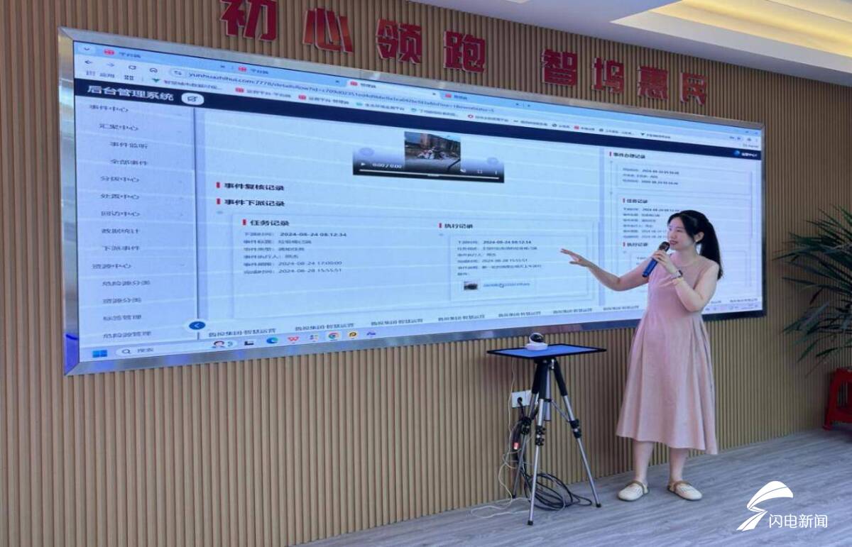 智慧数字平台还建立了完善的事件上报和闭环处理机制。褚家村,网格员田雪伟通过“丁坞运营”APP上传村口垃圾外溢照片。信息瞬间被平台“派单”至镇垃圾中转站。工作人员徐志渤在指挥中心大屏上确认后,立即调度清运车辆,不到一小时便处理完毕。“无论是公共设施损坏、日常民生诉求,还是安全隐患上报,都能通过系统快速响应,实现'上报-受理-处置-反馈-评价'全链条闭环管理,处理结果同步公开,并自觉接受群众监督。”讲解员补充道。这种“民有所呼、我有所应”的机制,正是基层党员干部践行初心使命、提升群众满意度的有力体现。