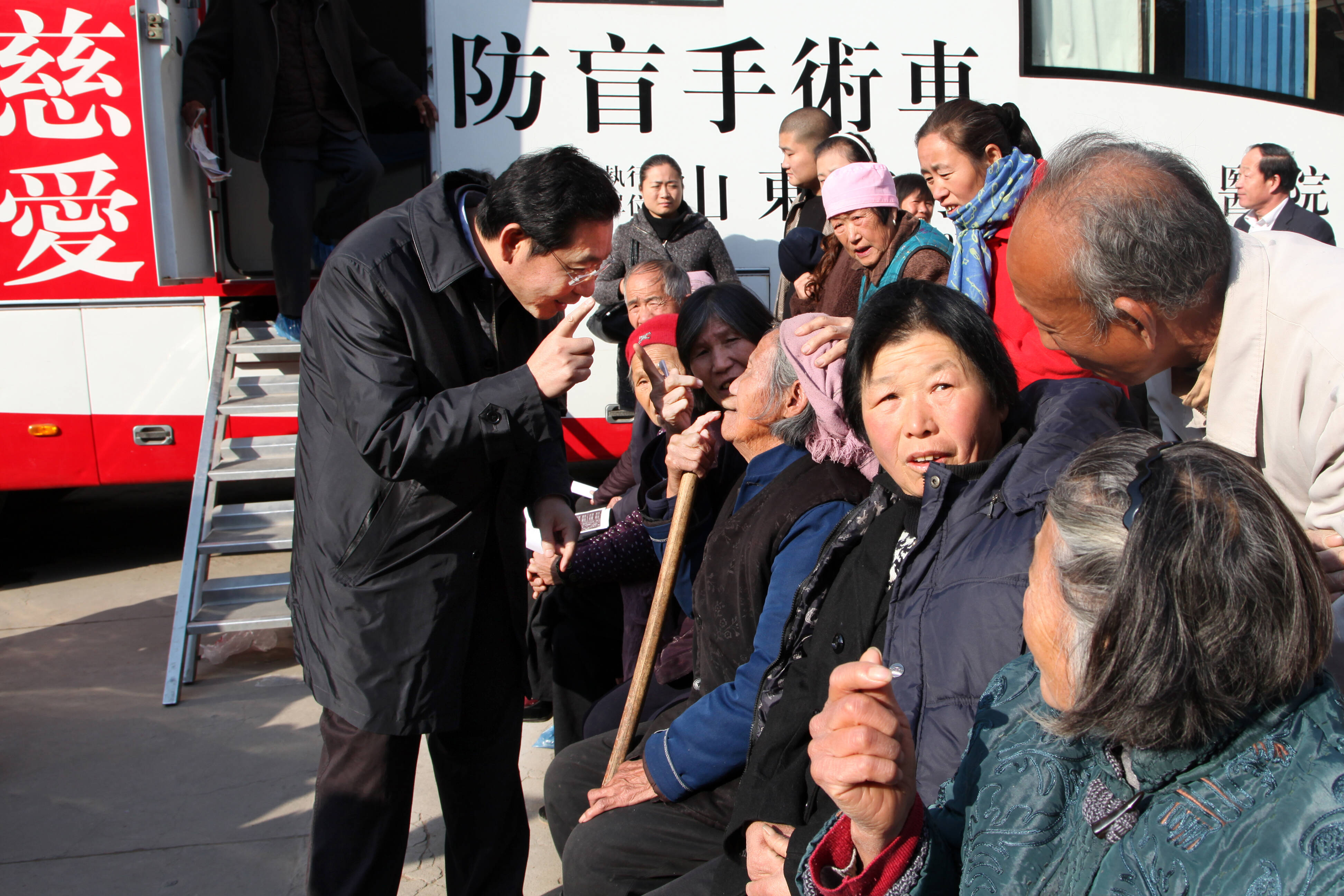 除了在医院坐诊,毕宏生还主动走出去,给很多“失望之人”带去光明和希望。早在1996年,他就开始每年有计划地参与社会公益活动,免费为孤寡老人、军烈属、孤残儿童、贫困盲人等进行复明手术。