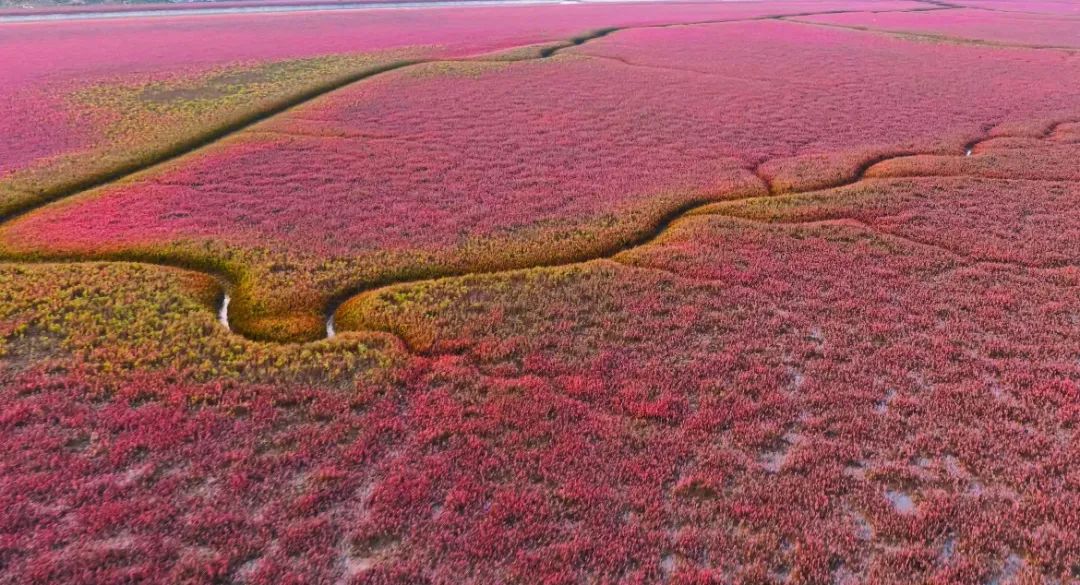 虽以深秋全面泛红广为人知,曾多次登上中央电视台,吸引众多居民游客前来打卡,但夏日的红海滩更添一份层次之美。
