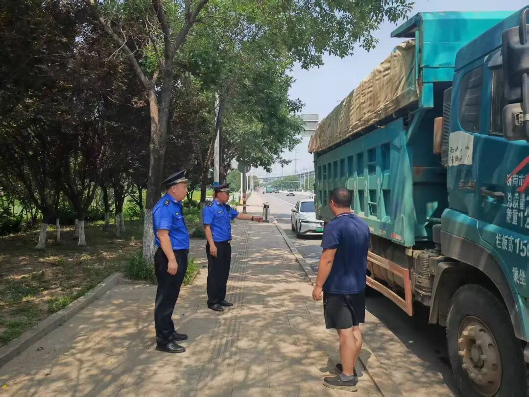 此外,执法人员对在建工地进行了执法检查,对建筑垃圾运输车辆是否存在车体不洁、车轮带泥上路、未密闭运输、沿途撒漏等问题进行现场查看,现场提出整改要求,明确规范文明施工运输标准。