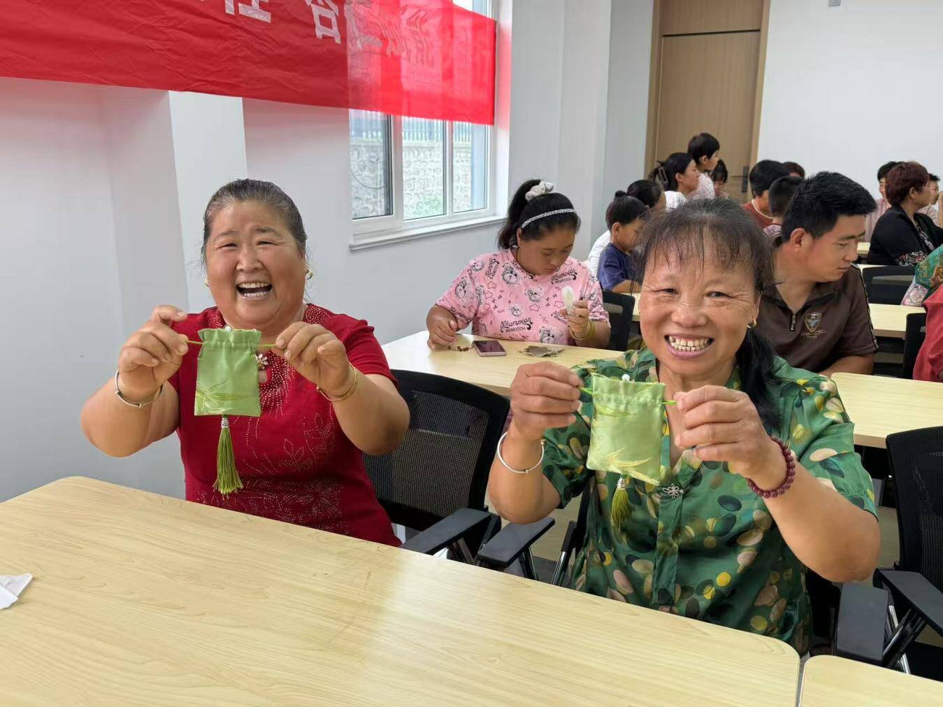 活动伊始,山东中医药高专于明宇教授以生动的讲解,为村民揭开香囊文化的神秘面纱。从端午佩香的传统习俗,到艾叶、薄荷等药材的药用价值,再到香囊承载的“防病于未然”养生智慧,村民们听得津津有味。“没想到小小香囊里藏着这么多学问!”东石格庄村村民张大姐连连赞叹。